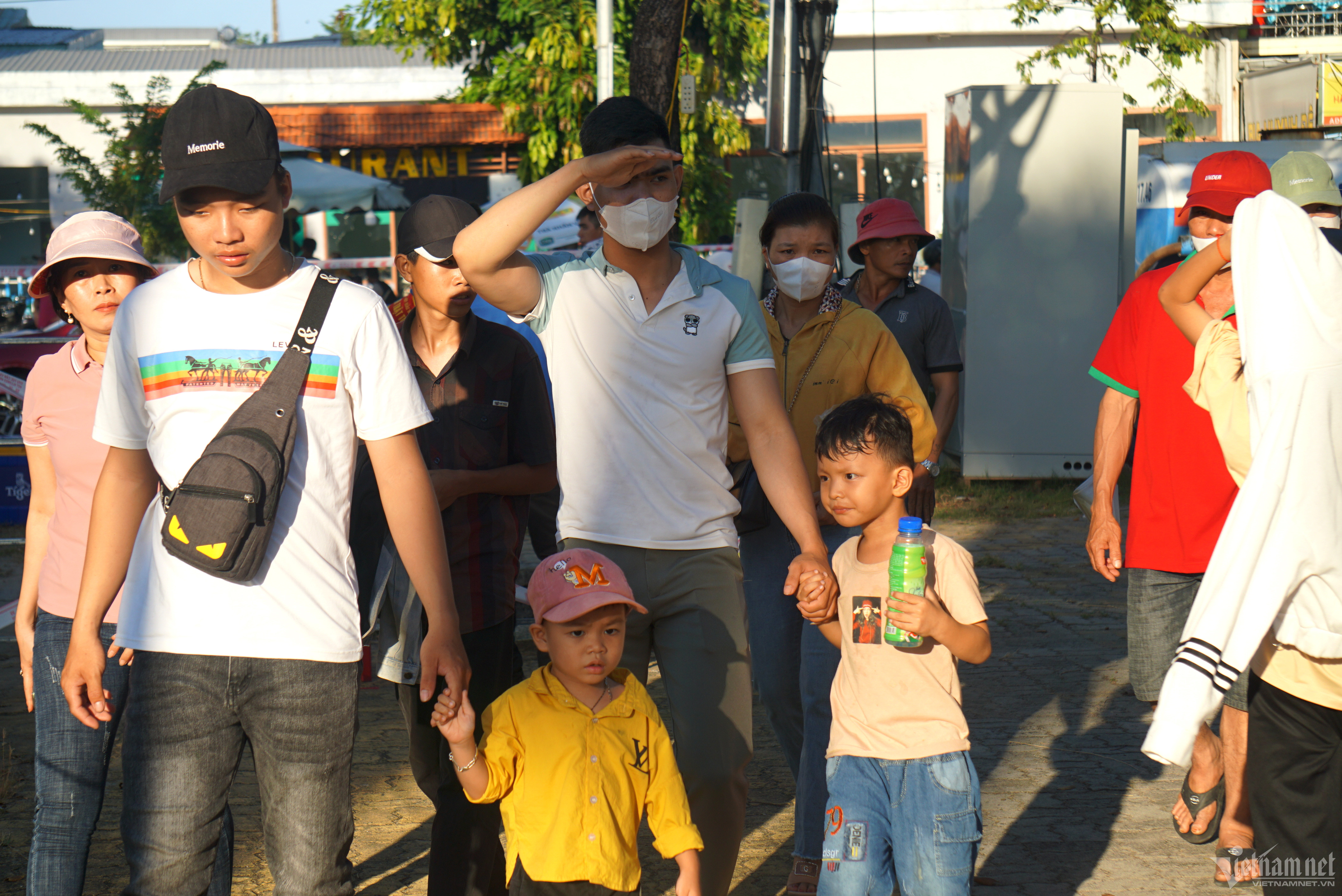 Nhiều gia đình trải bạt, mang theo thức ăn đến sớm kiếm chỗ ngồi gần khu vực bắn pháo hoa xí chỗ