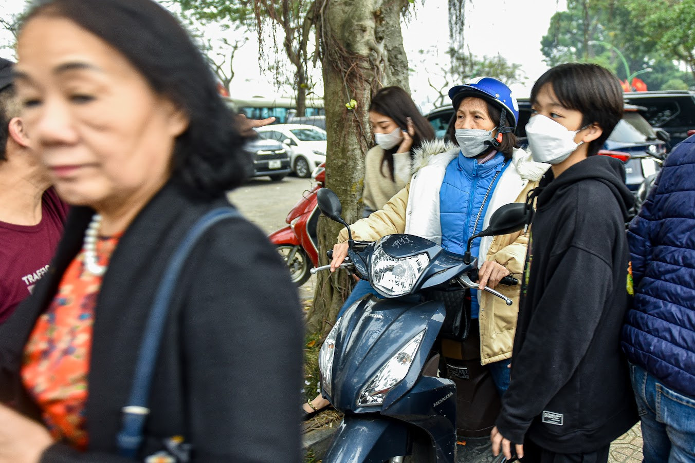 "Khu vực đường Thanh Niên là nơi tọa lạc của những đền, chùa nổi tiếng nên lượng người đổ về rất đông. Gia đình tôi phải để ô tô ở cách đây 300m rồi đi bộ đến đền Quán Thánh, sang chùa Trấn Quốc. Nếu đi ô tô, thời gian di chuyển có khi mất hàng giờ vì tắc nghẽn", chị Huyền Thương (Ba Đình, Hà Nội) cho biết