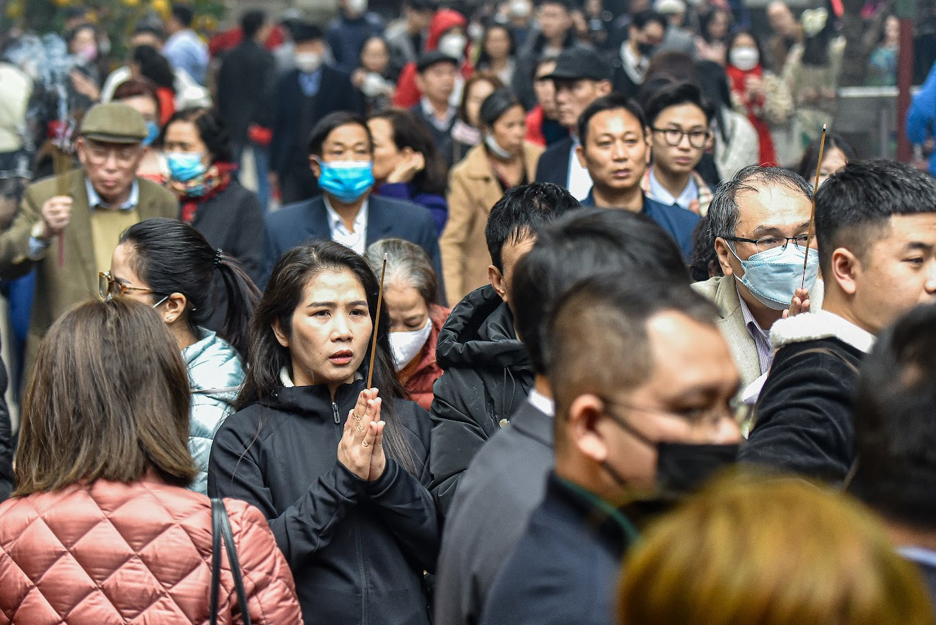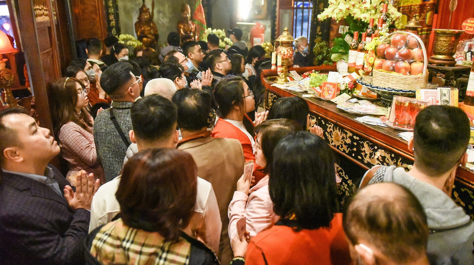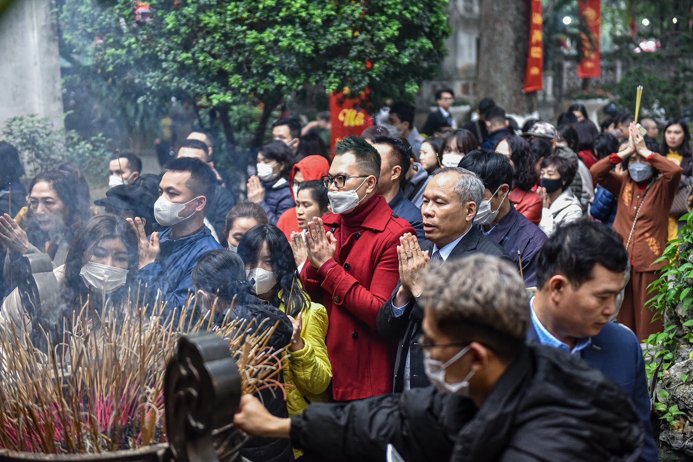 Hàng ngàn người dân và du khách đổ về các đền, chùa linh thiêng của Hà Nội trong chiều mùng 1 Tết Nguyên đán Quý Mão 2023.