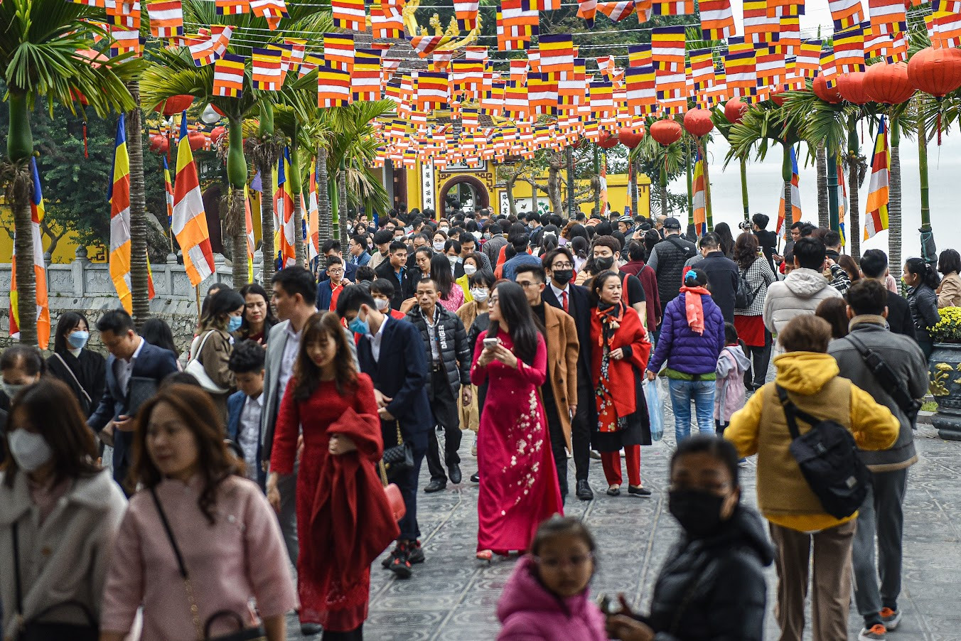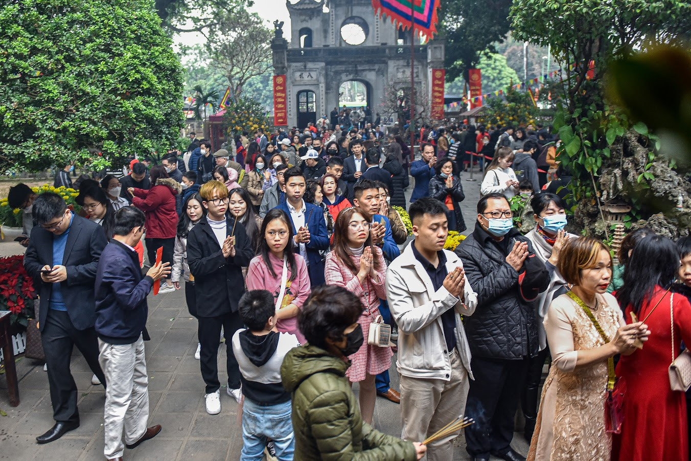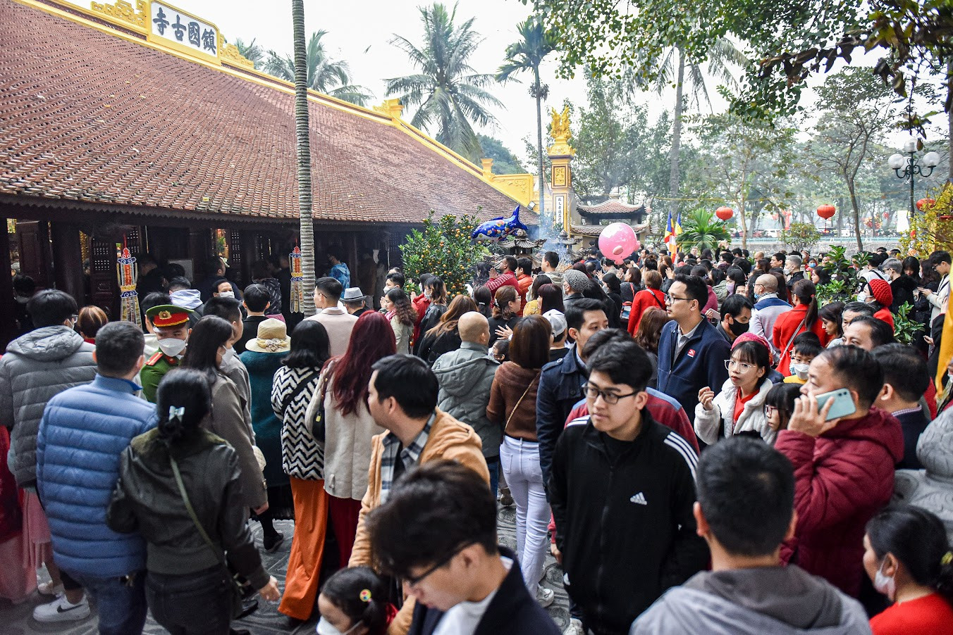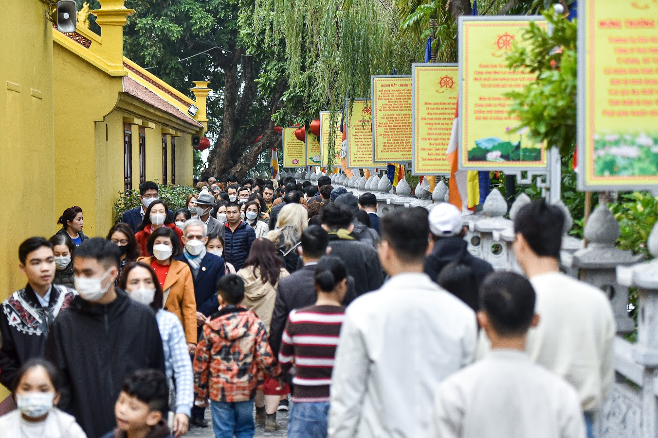 Hàng ngàn người dân và du khách đổ về các đền, chùa linh thiêng của Hà Nội trong chiều mùng 1 Tết Nguyên đán Quý Mão 2023.