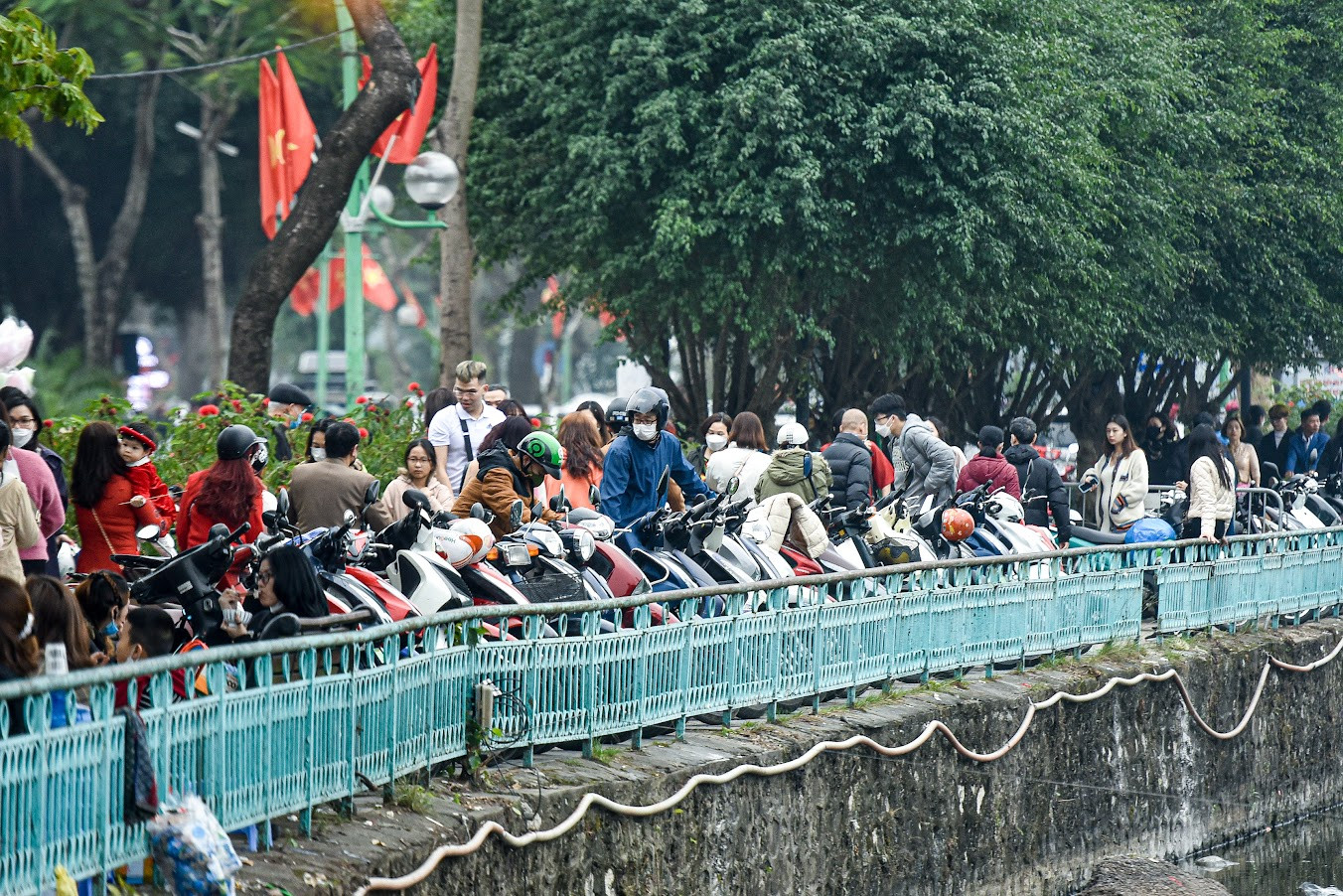 Chiều ngày mùng 1 Tết Quý Mão, hàng ngàn người dân Hà Nội và du khách tới các đền, chùa linh thiêng, cổ kính của thủ đô để du xuân, cầu bình an trong năm mới. Tuyến đường Thanh Niên, đoạn nối từ đền Quán Thánh đến chùa Trấn Quốc kín đặc phương tiện giao thông, thường xuyên ùn ứ, di chuyển khó khănXe ô tô xếp dài dưới lòng đường, xe máy để chật kín vỉa hè ven hồ Tây
