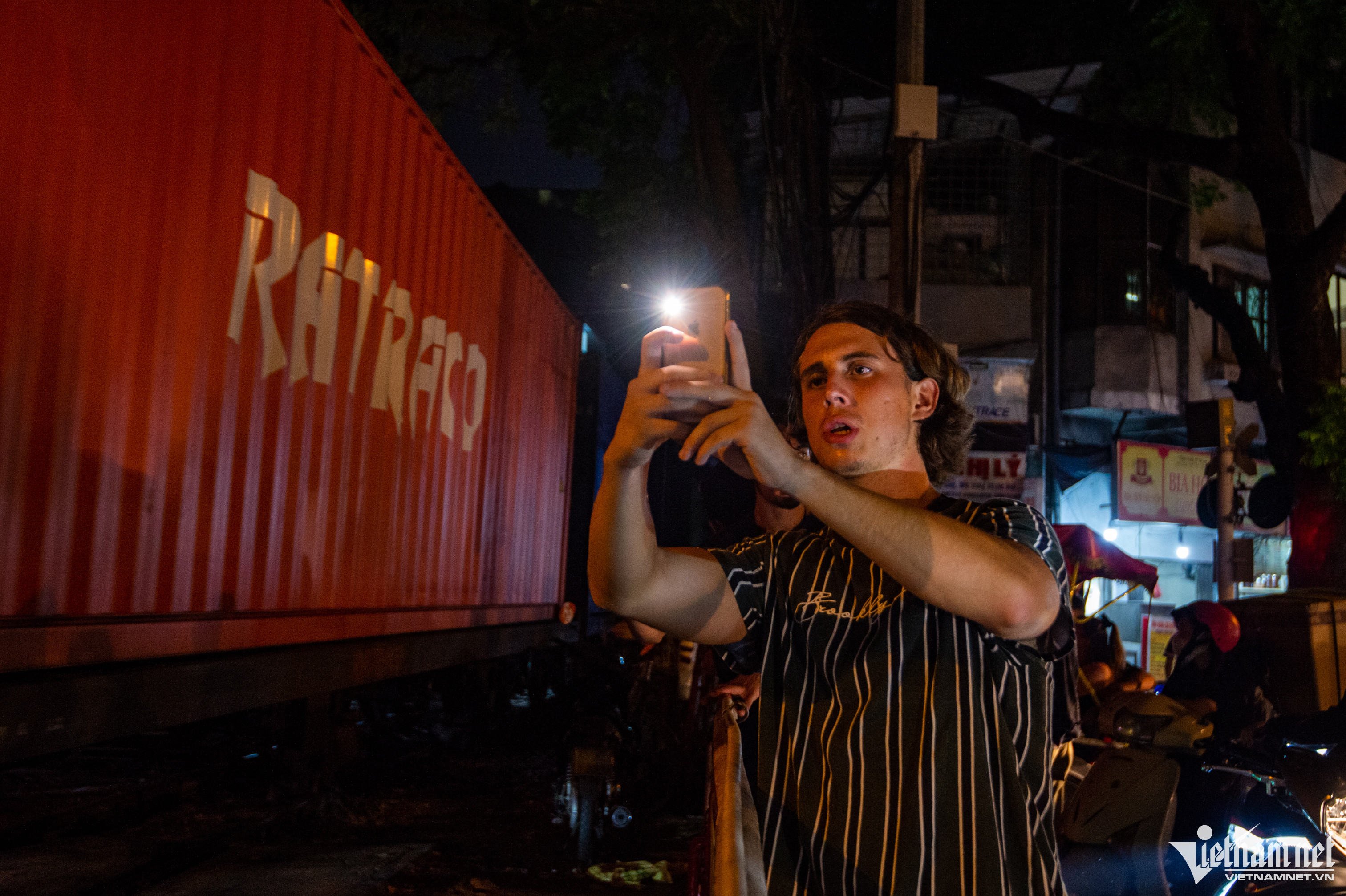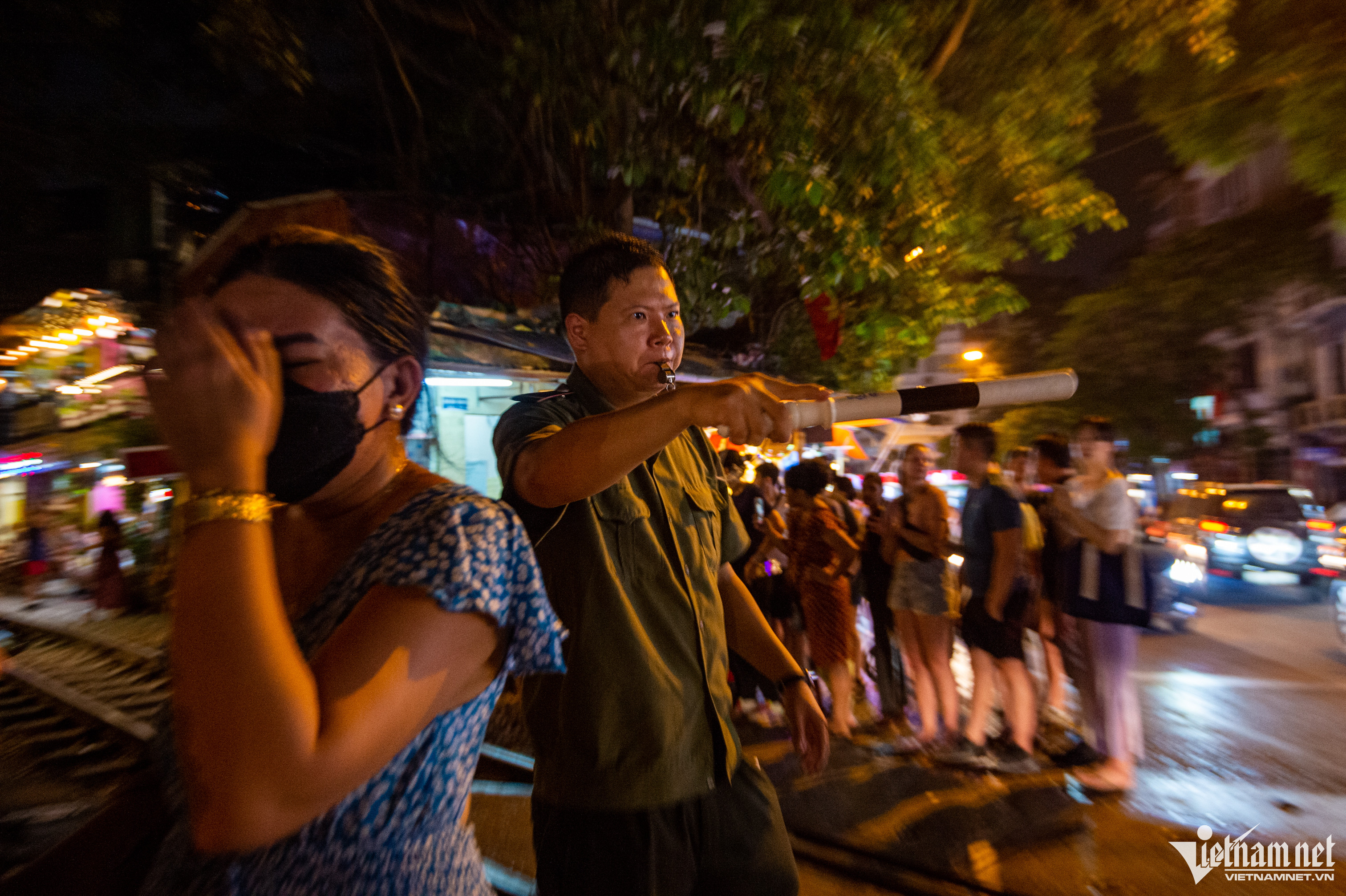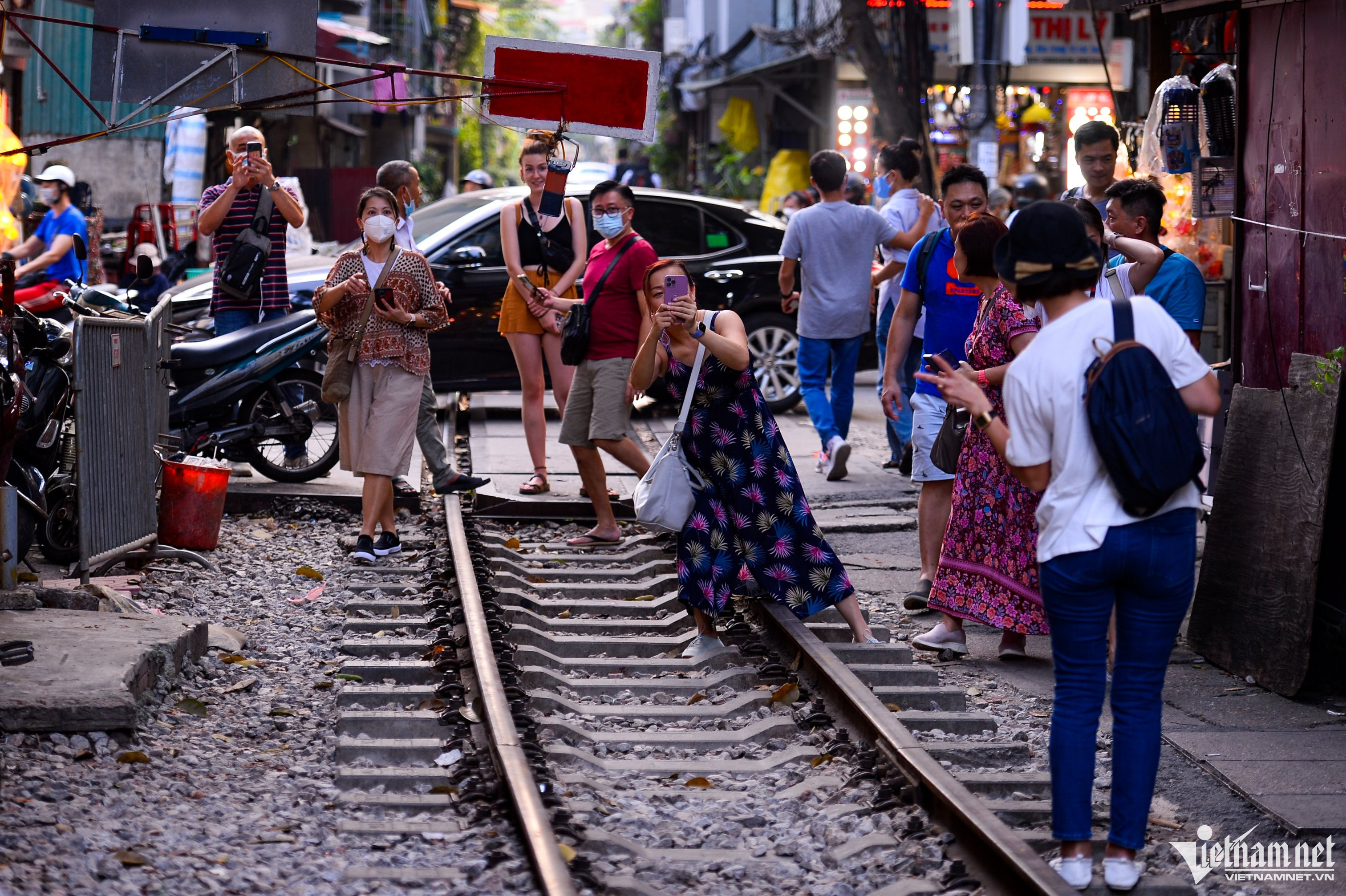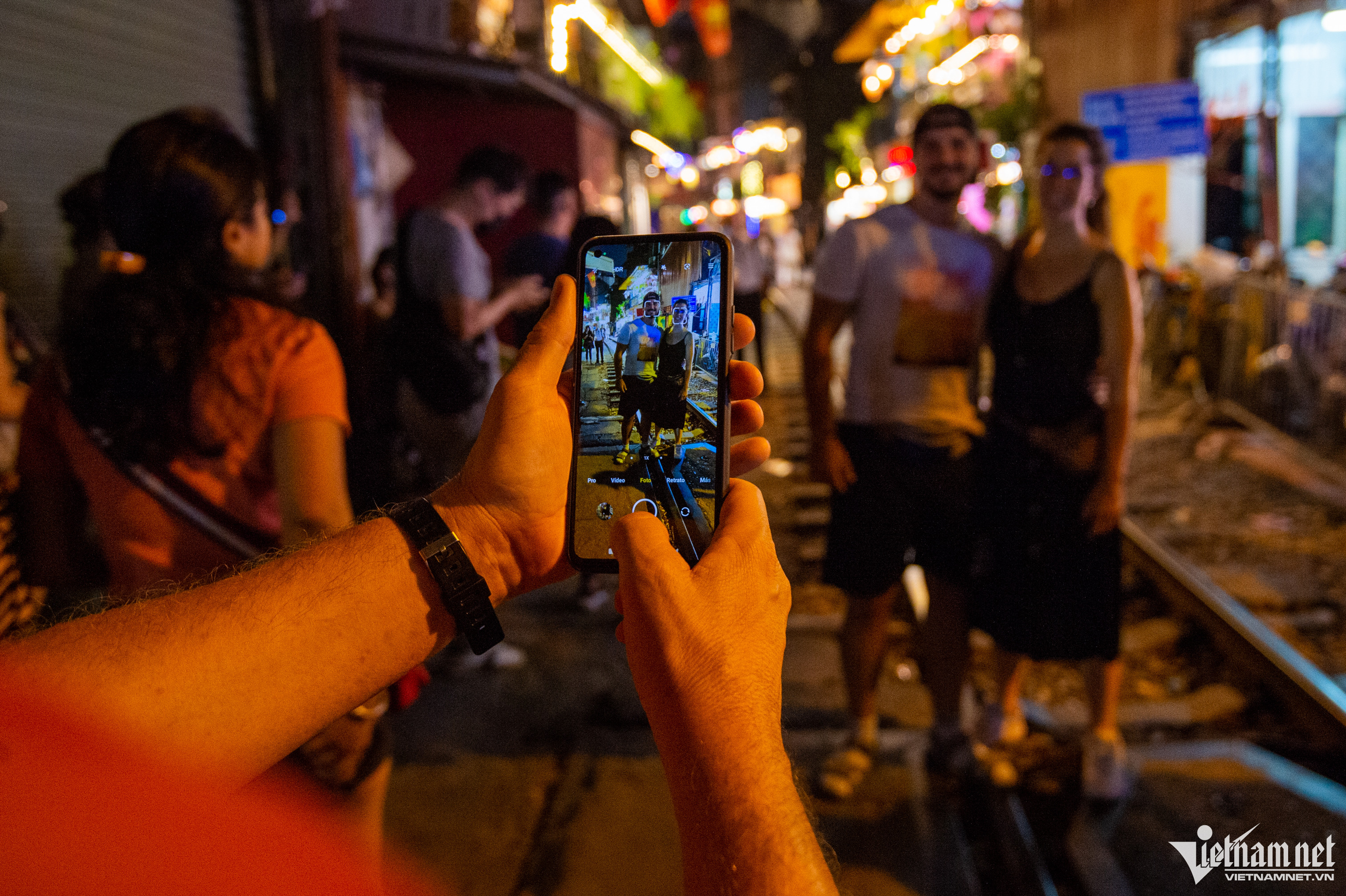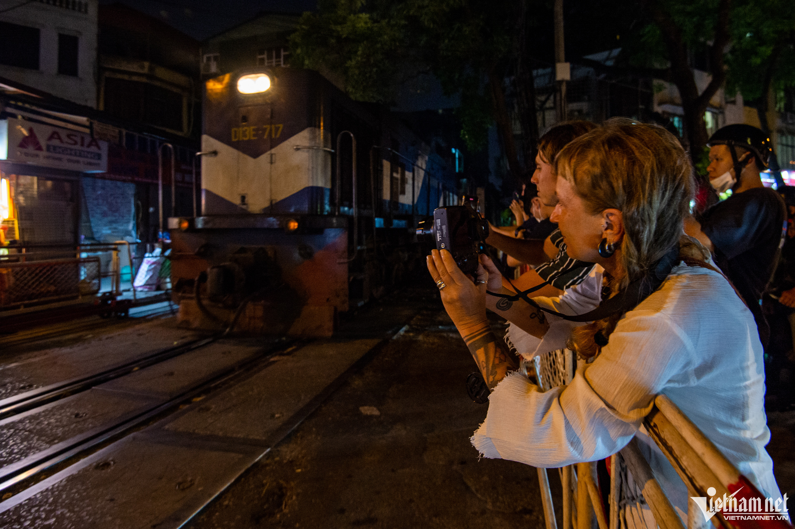Phố cà phê đường tàu chiều 14/9 khá nhộn nhịp với sự xuất hiện của nhiều du khách quốc tế.Chiều 14/9, Phó Chủ tịch UBND quận Hoàn Kiếm Nguyễn Anh Quân cho biết, tất cả các hộ dân đang kinh doanh ở khu vực đường tàu đều vi phạm hành lang an toàn đường sắt.Vào lúc 19h, lực lượng an ninh đã tới thông báo về việc tạm đóng cửa 'phố cà phê đường tàu', đồng thời thu hồi giấy phép các hộ kinh doanh vi phạm an toàn hành lang an toàn đường sắt. Nhiều chủ hàng vội vàng dọn dẹp sau khi bị nhắc nhở.19h, tại các lối vào, lực lượng chức năng dựng rào chắn, không cho du khách vào bên trong phố đường tàu.Sau khi phong tỏa, khá đông người đứng bên ngoài với hy vọng sẽ có thay đổi, để được vào trong.Anh Huế (32 tuổi), chủ cửa hàng kinh doanh cà phê tại đây đã đứng ra giải thích cho du khách về sự cố này. "Việc quay phim, chụp ảnh ngay dưới lòng đường ray tiềm ẩn nhiều nguy hiểm. Chúng tôi rất tiếc phải thông báo với quý khách phố đường tàu sẽ tạm thời đóng cửa trong thời gian này. Hy vọng sẽ gặp lại mọi người vào một dịp gần nhất", anh Huế thông báo.Bà Jolie (đến từ Pháp) bày tỏ: "Tôi được bạn bè giới thiệu rằng phố đường tàu là nơi thực sự phải ghé thăm khi đến Hà Nội. Vậy mà tôi ghé đúng lúc ngừng hoạt động, tôi thấy tiếc".Đứng ngóng từ bên ngoài, anh Mạnh Cường cảm thấy hụt hẫng vì sống ở Hà Nội cũng đã lâu nhưng chưa có cơ hội ghé thăm phố đường tàu. "Cá nhân tôi thấy việc quay phim, chụp ảnh ngay dưới lòng đường ray thật sự nguy hiểm, nhưng phố đường tàu là một điểm đến hấp dẫn du khách quốc tế, nếu bỏ đi cũng khá tiếc. Tôi nghĩ nên có thêm một số biện pháp để vừa đảm bảo an toàn giao thông vừa phát triển du lịch", anh Mạnh Cường chia sẻ.Không được vào trong, du khách đành chụp ảnh bên ngoài lối ra vào.Nhiều người nán lại chờ xem tàu đi qua.Thời điểm tàu đến, những vị khách quốc tế tỏ ra thích thú.Sau 3 ngày tham quan TP.HCM, anh Jose (đến từ London) cùng bạn bè ghé thăm Hà Nội. Phố đường tàu là nơi đầu tiên anh tới. "Nhìn từ bên ngoài, con phố đầy sắc màu thực sự rất ấn tượng, đặc biệt hơn nữa khi có đoàn tàu chạy qua. Mặc dù đã đi du lịch nhiều nơi, đây mới là lần đầu tôi thấy khung cảnh thú vị như vậy. Tôi cảm thấy tiếc. Có lẽ đây cũng là lần cuối tôi được nhìn thấy nó", chàng trai Anh quốc nói.