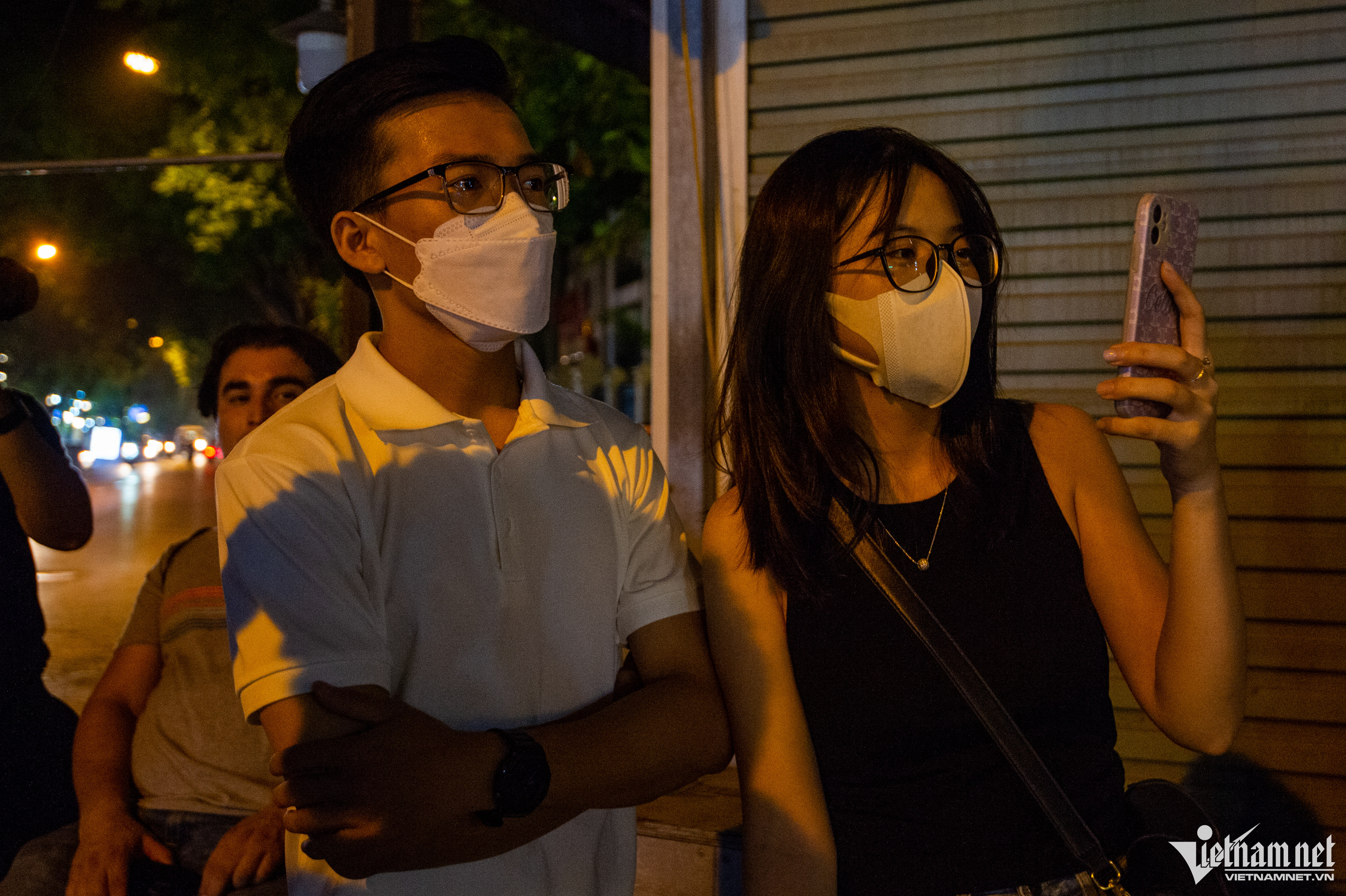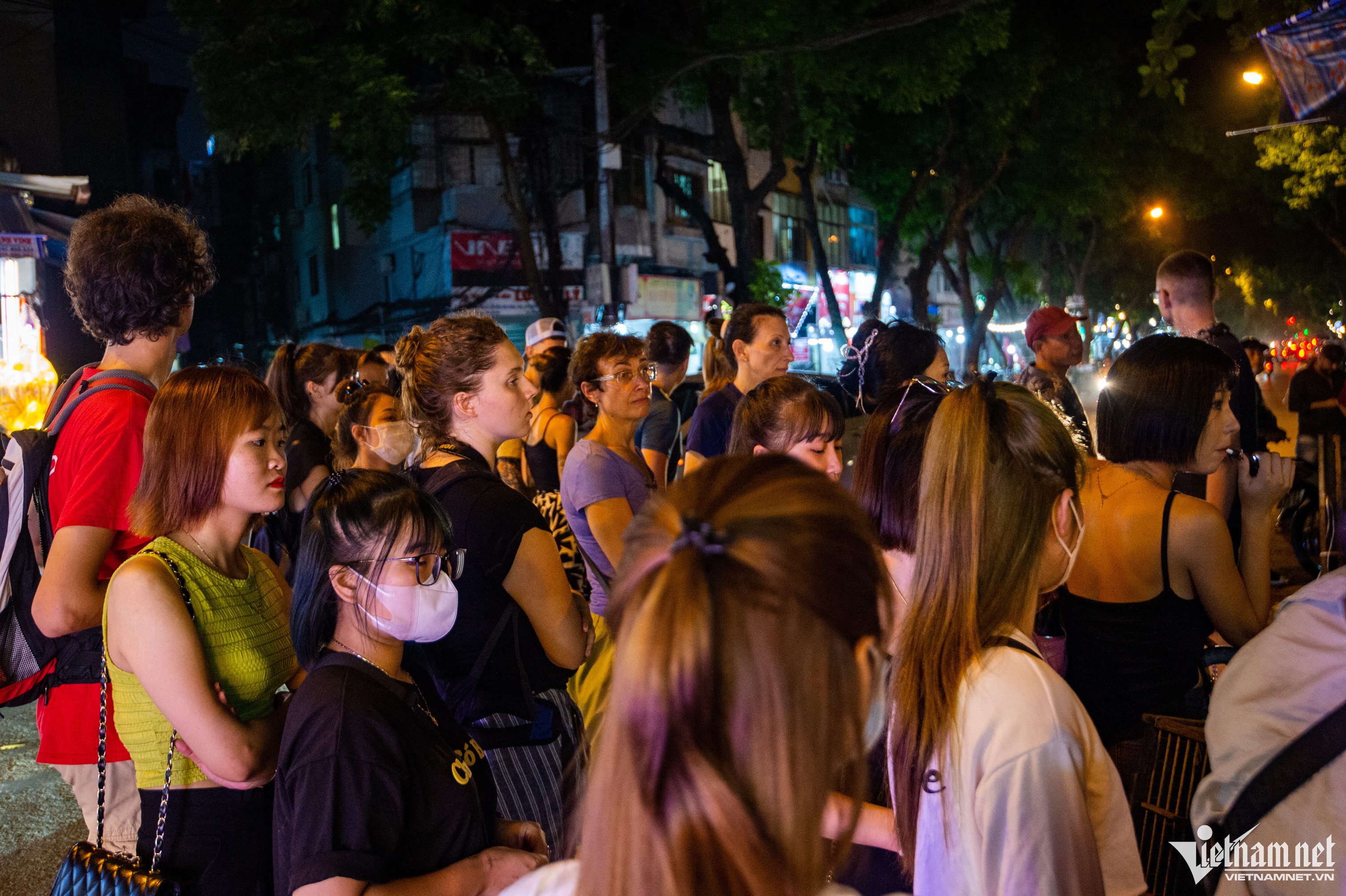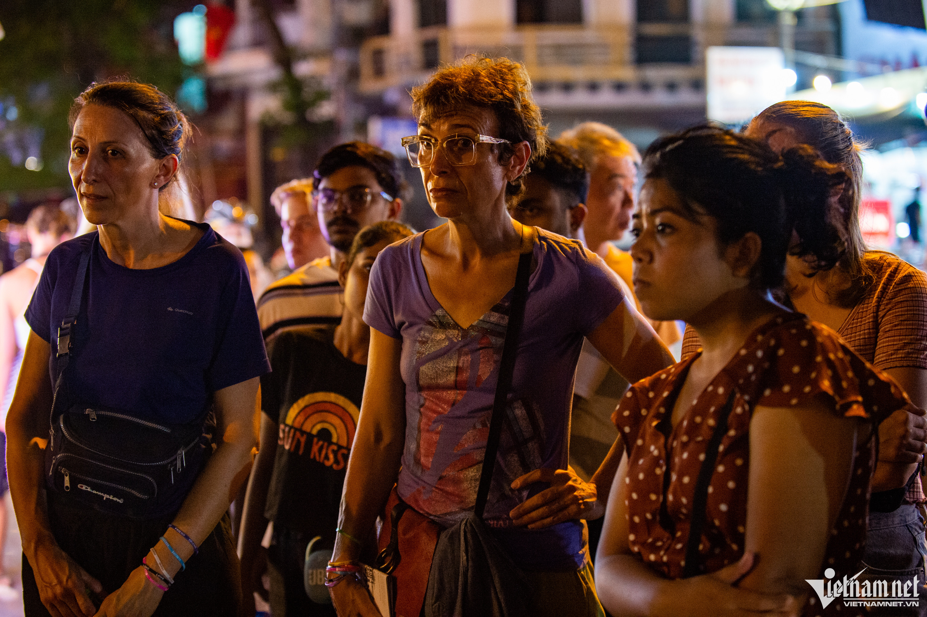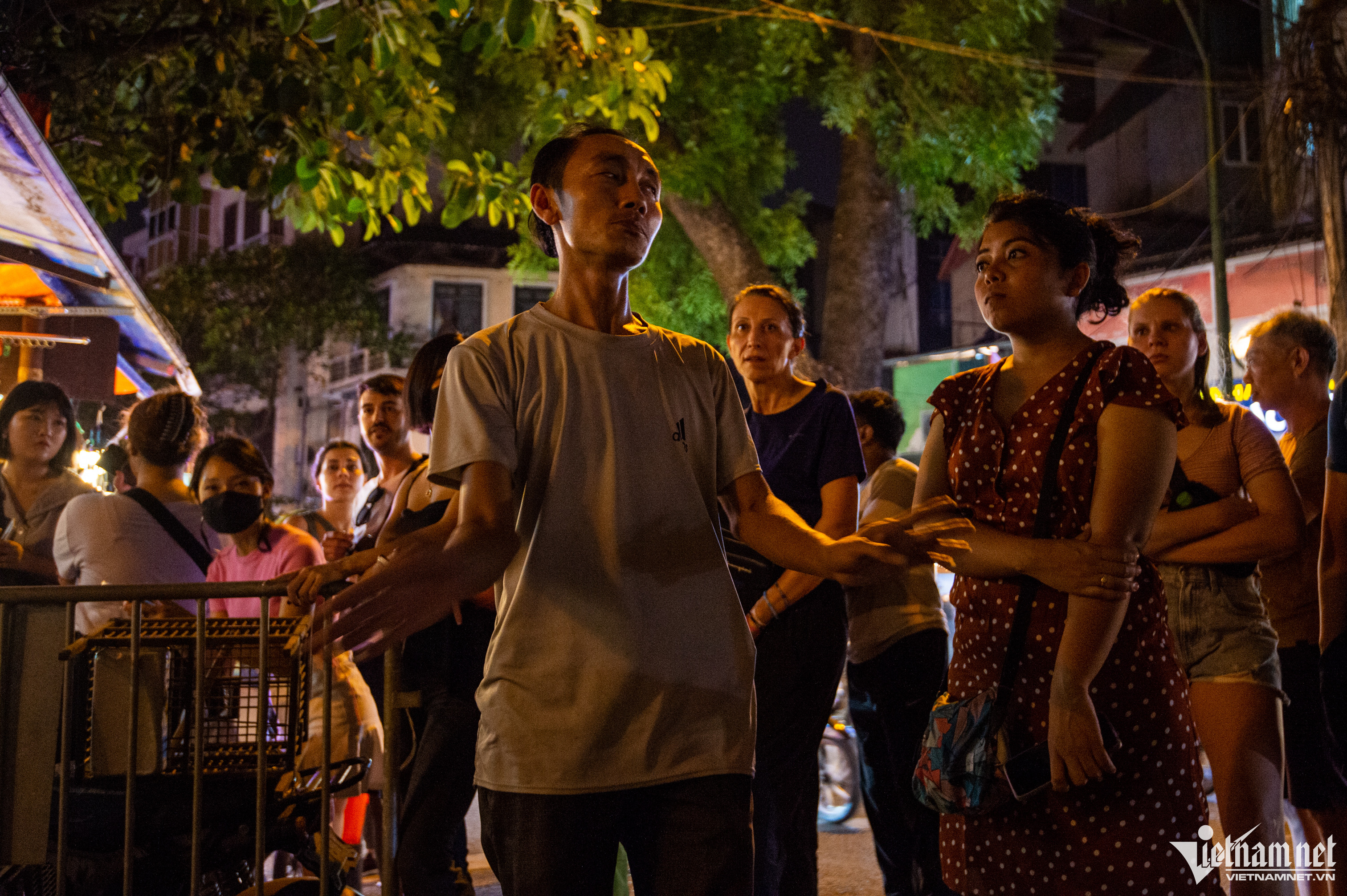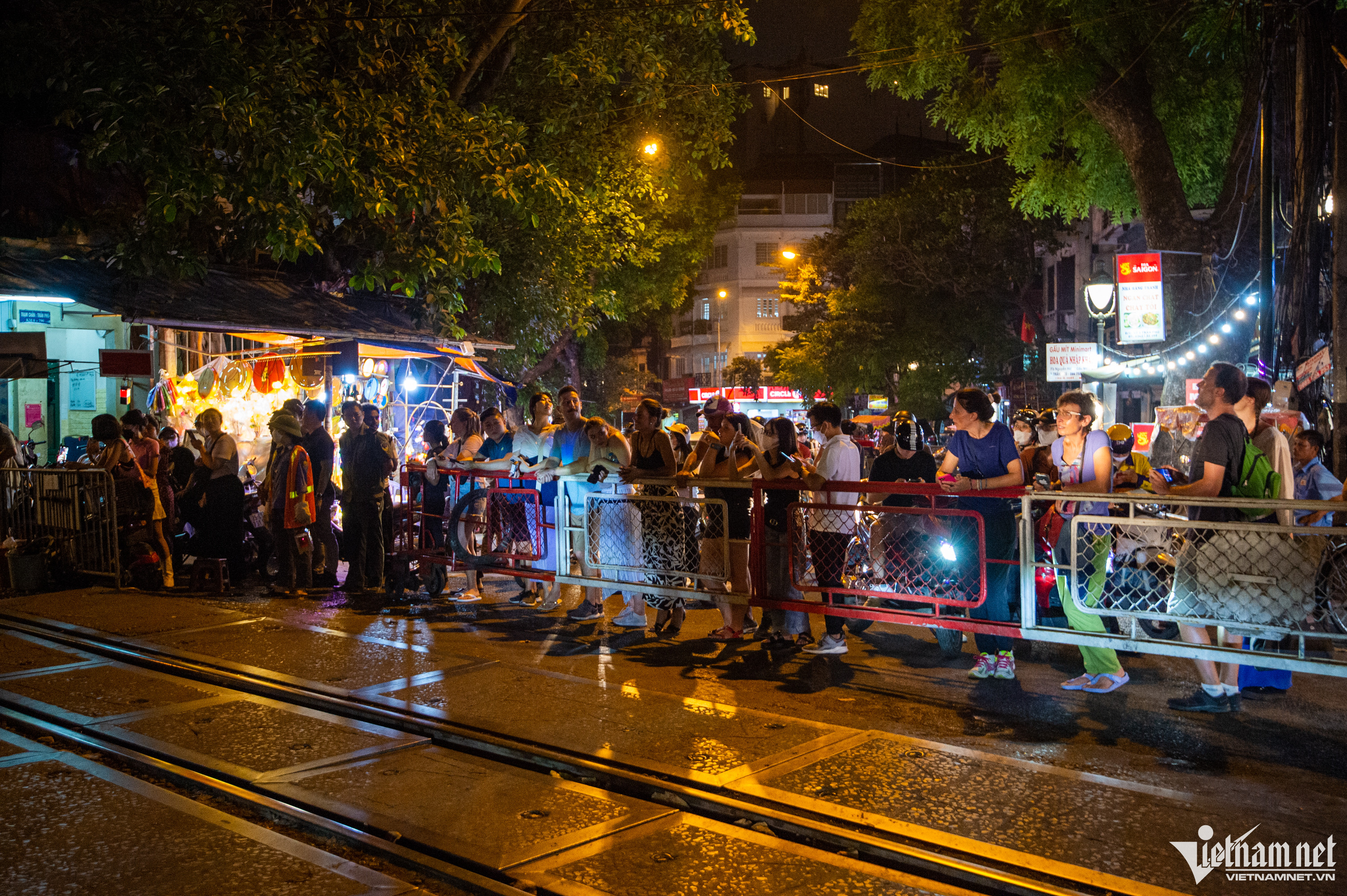 Nhiều du khách phải đứng ngoài, không thể vào trong để trải nghiệm phố đường tàu khi lực lượng chức năng bắt đầu dựng rào chắn phong tỏa, tối 14/9.