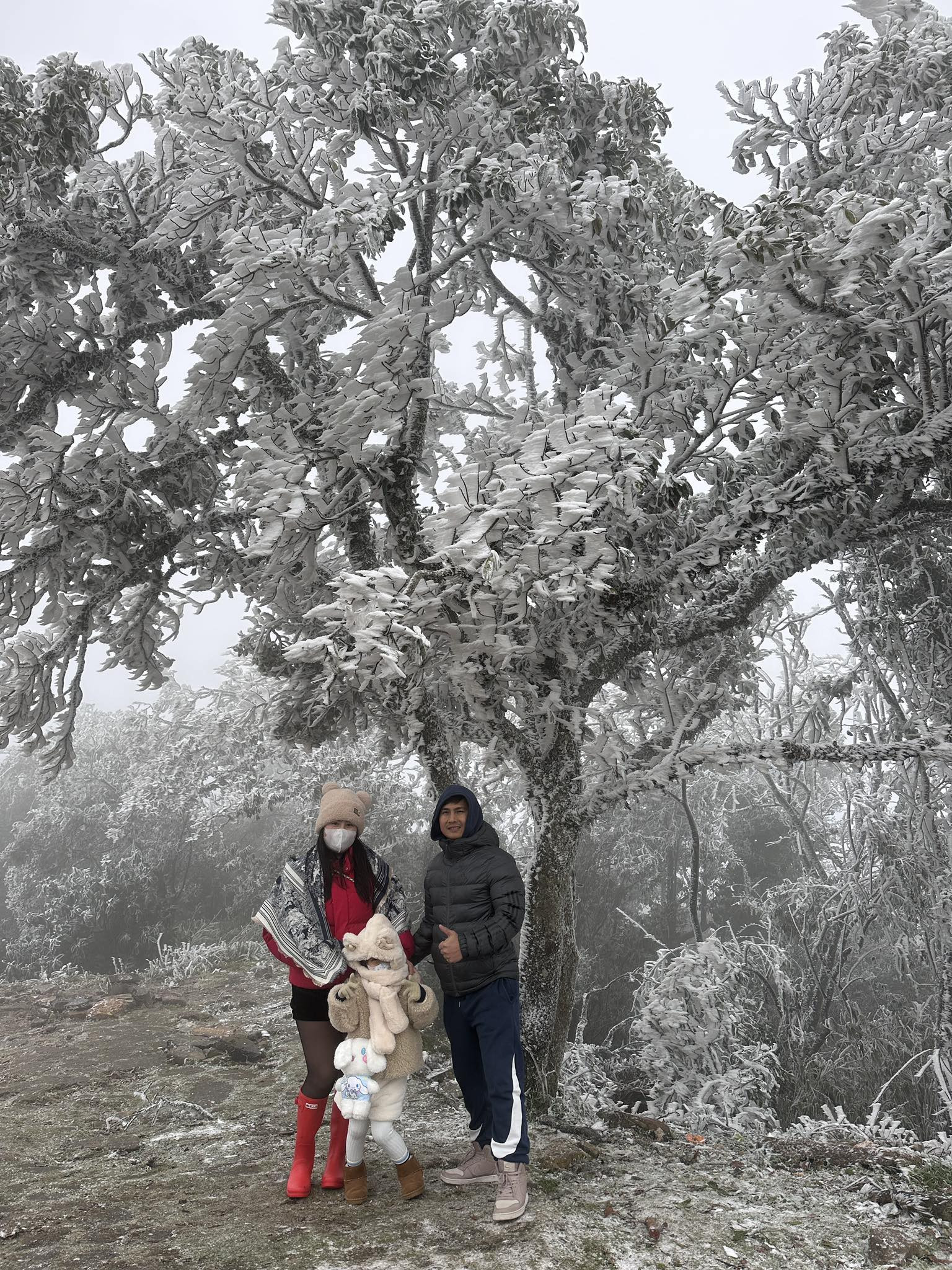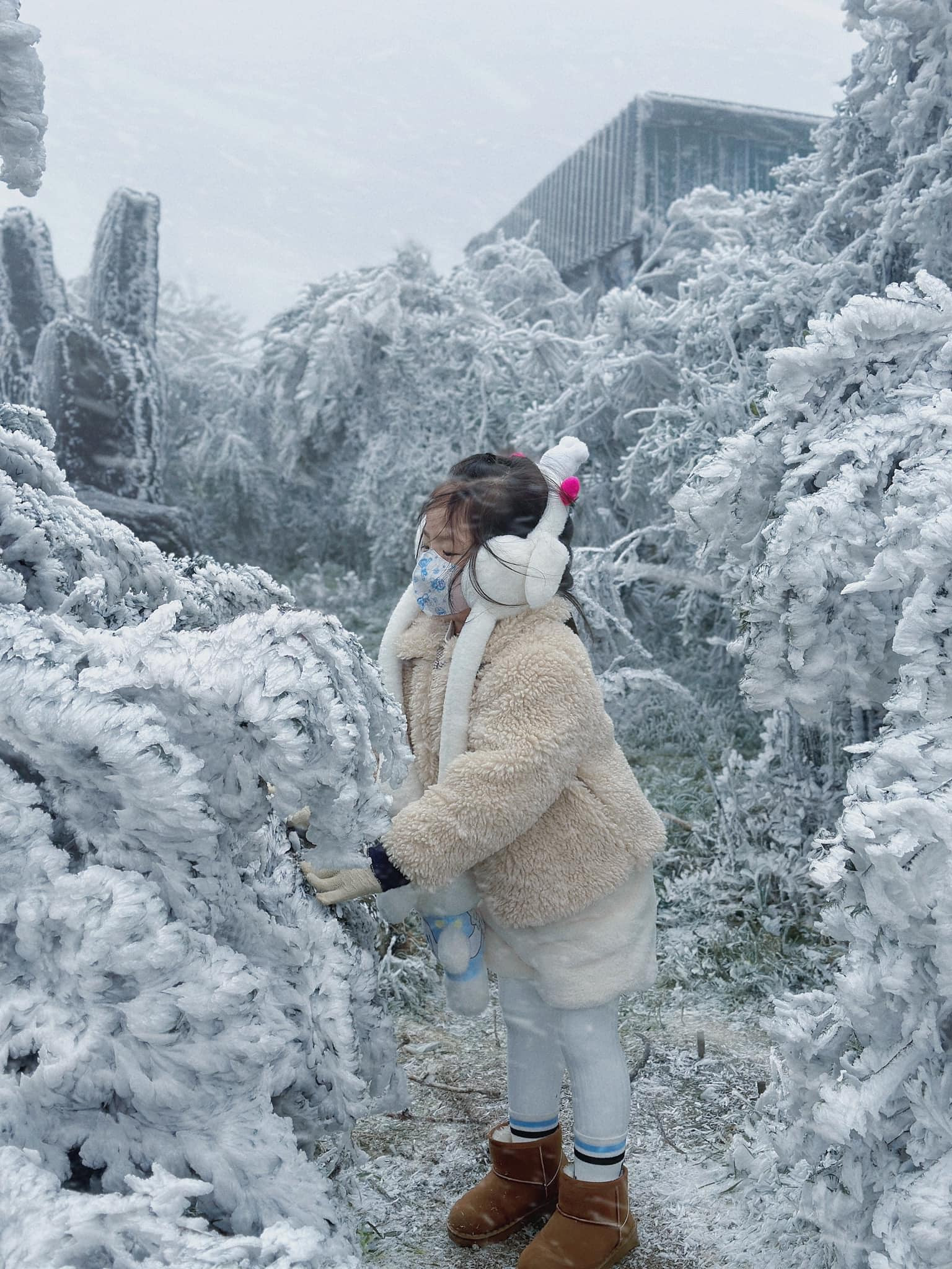 Bé Sóc check-in với khung cảnh băng giá phủ trắng Mẫu Sơn