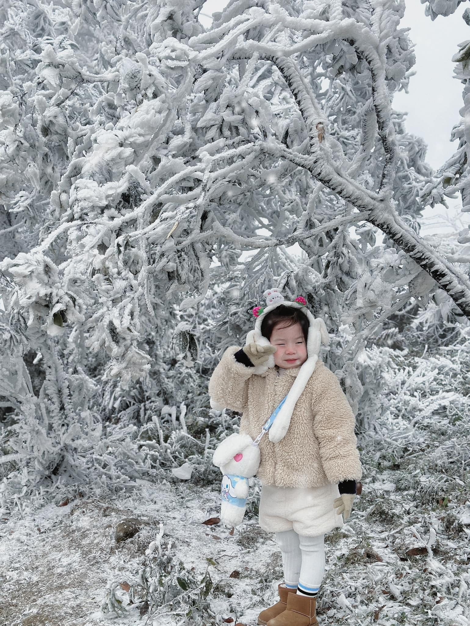 Nhiều phụ huynh đã đưa con nhỏ tham gia hành trình vượt hàng trăm km để chiêm ngưỡng khung cảnh băng giá phủ trắng các đỉnh núi phía Bắc. Các bức ảnh được yêu thích, nhận ngàn like vì biểu cảm đáng yêu, ngộ nghĩnh của các du khách nhí.
