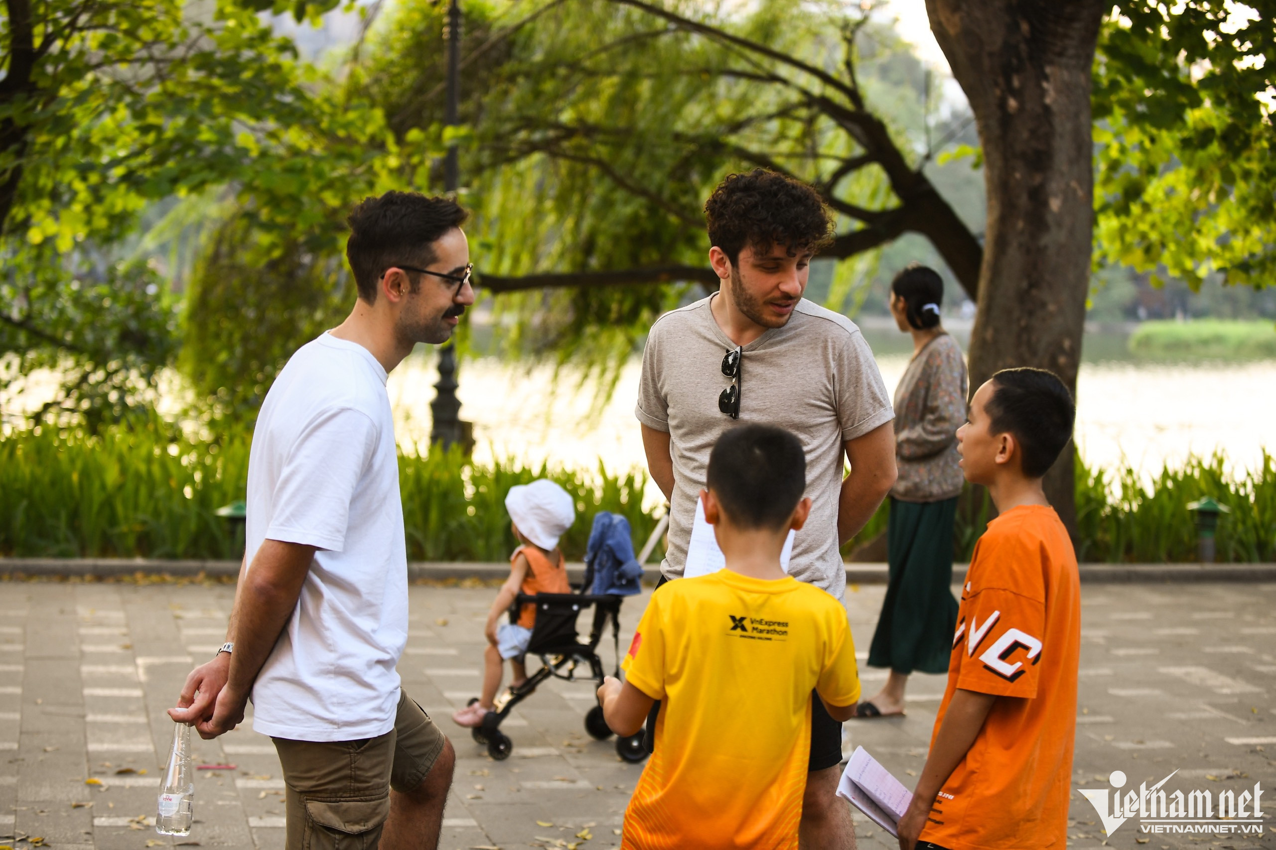 Buổi chiều nắng phản chiếu lên mặt hồ, Linh Chi và chàng trai tên Joss chụp bộ ảnh với phong cách nhẹ nhàng.Ông Doi (người Nhật Bản, sinh sống tại Việt Nam được 12 năm) chia sẻ, thời tiết của Hà Nội cũng là một phần lý do khiến ông gắn bó. Đến Việt Nam hơn 3 ngày Jack và Jessi rất mê ẩm thực đường phố, thời tiết tại Hà Nội. "Mọi thứ rất chiều lòng người", Jack cảm thán. Joyce và Fergal đứng tán ngẫu tiếng Anh với các bạn nhỏ người Việt Nam. Joyce (bên trái) cho biết anh đã đến TP.HCM và sau đó quay lại Hà Nội để tận hưởng thời tiết dễ chịu tại đây.