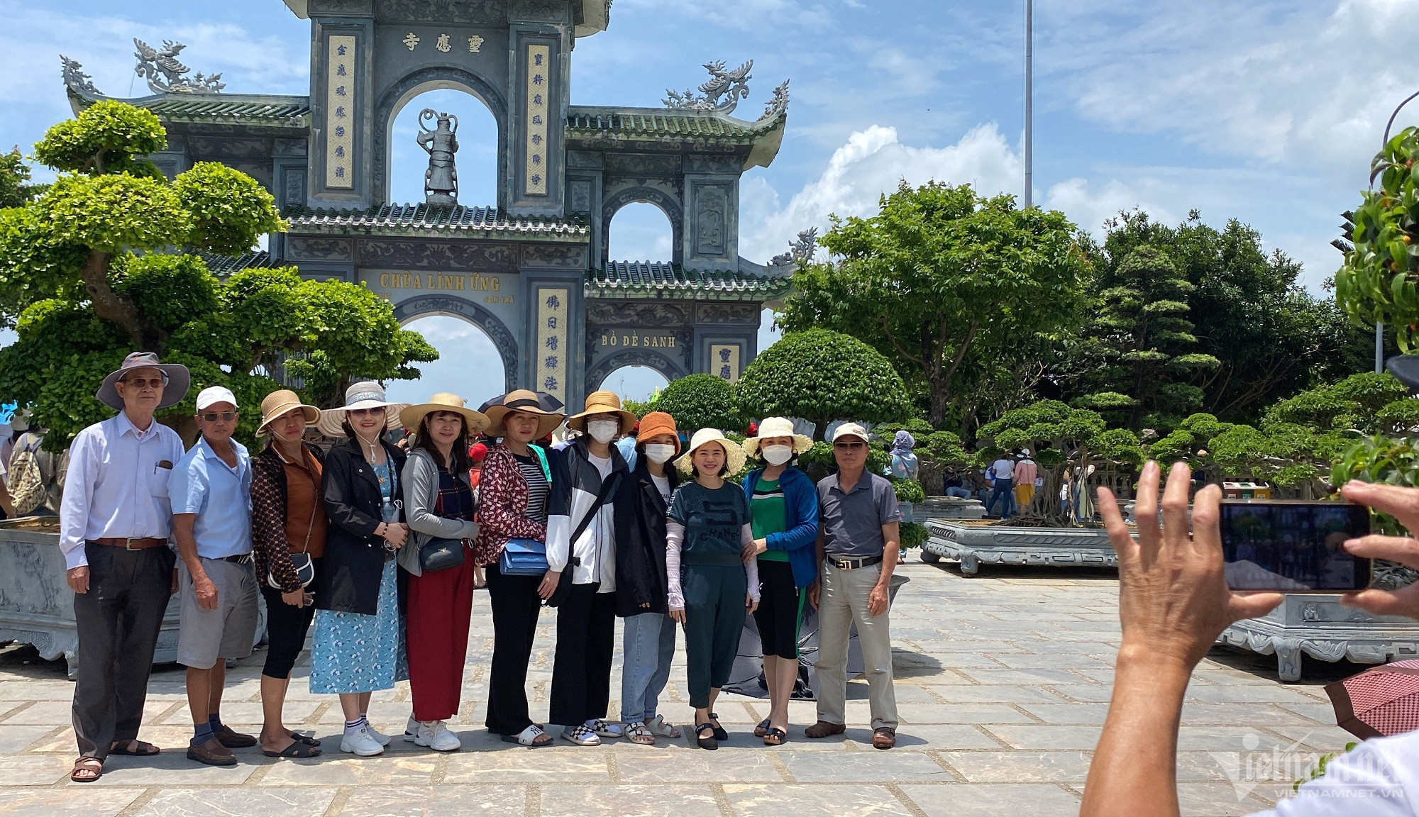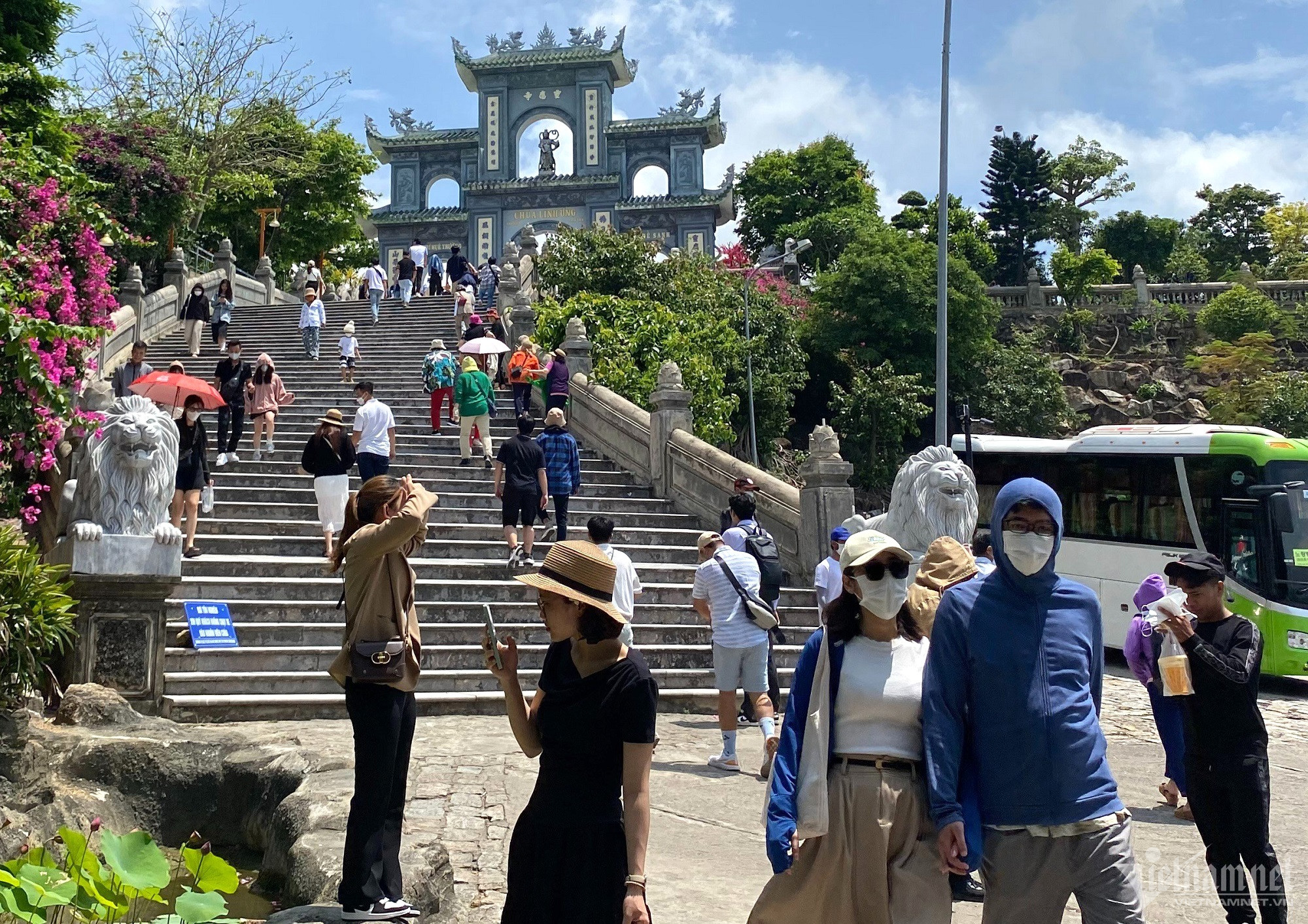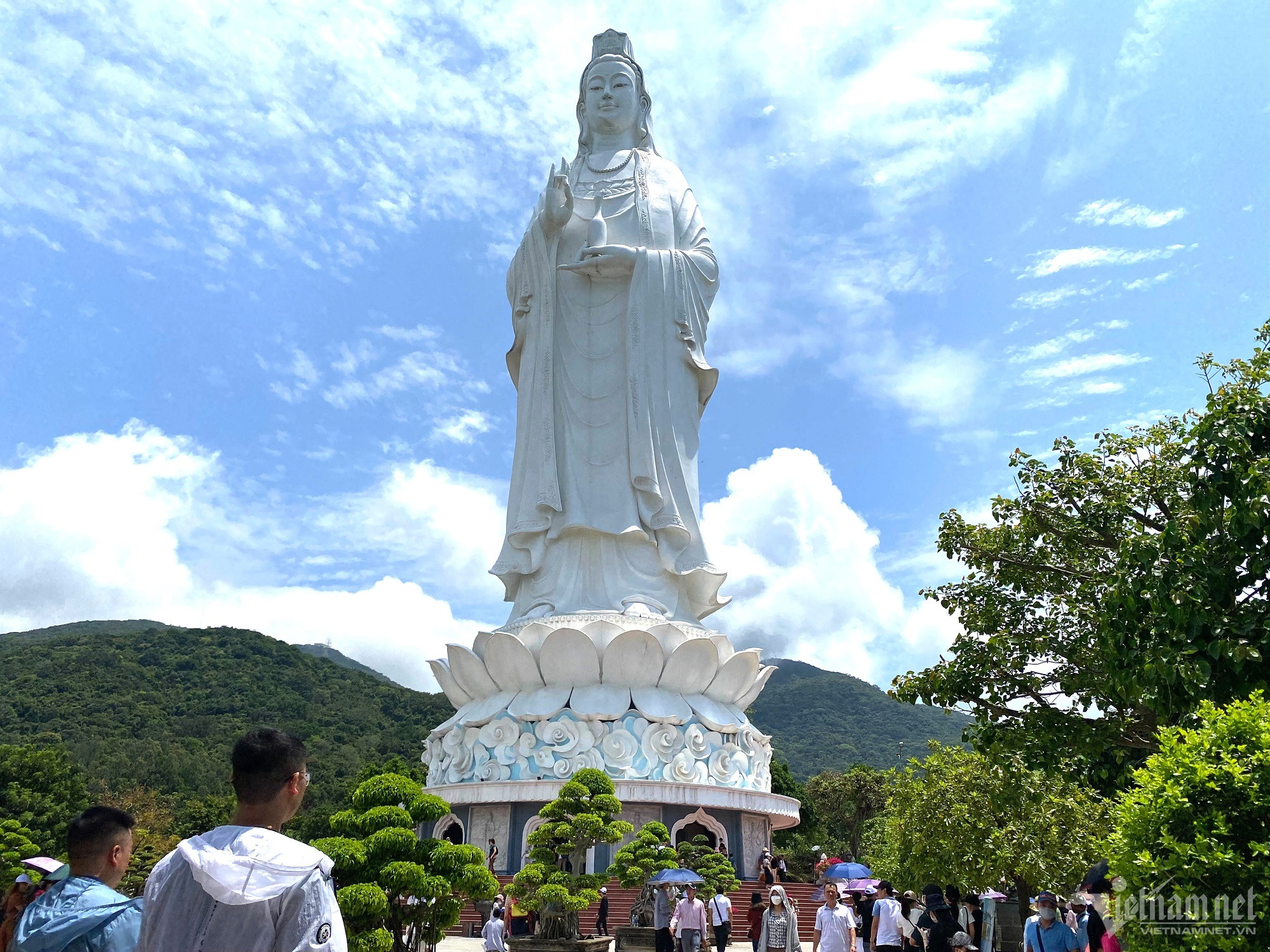 Hình ảnh du khách đổ về chùa Linh Ứng tham quan