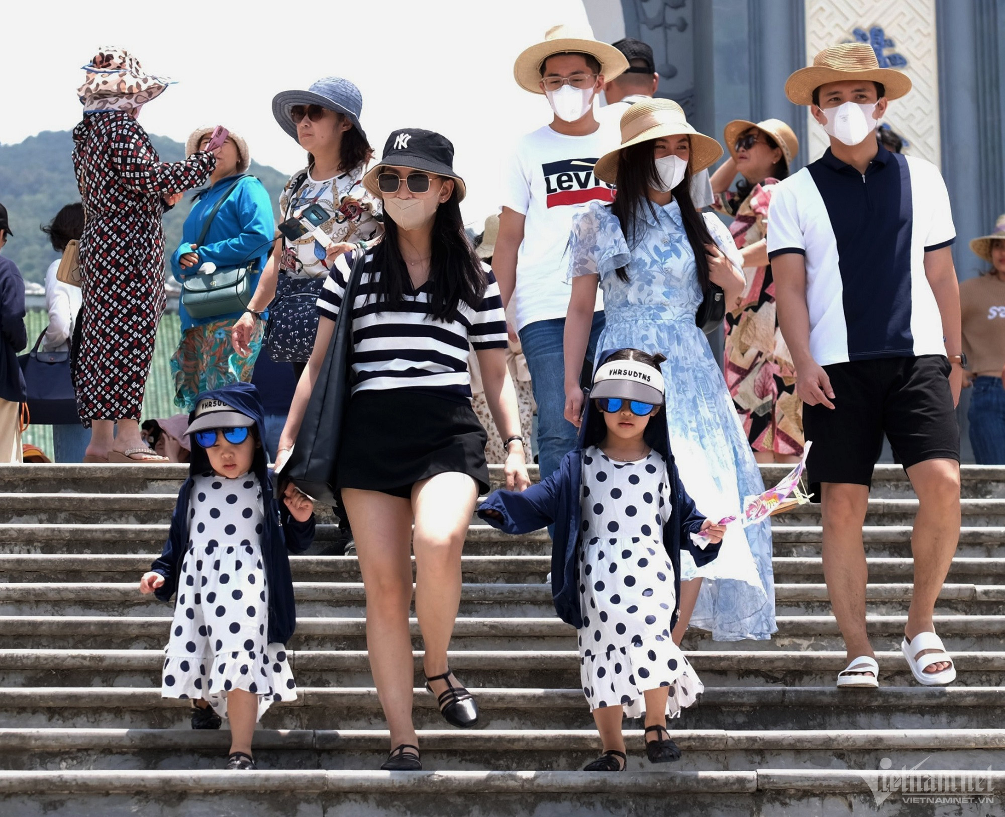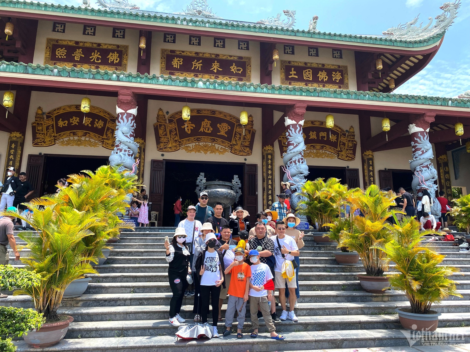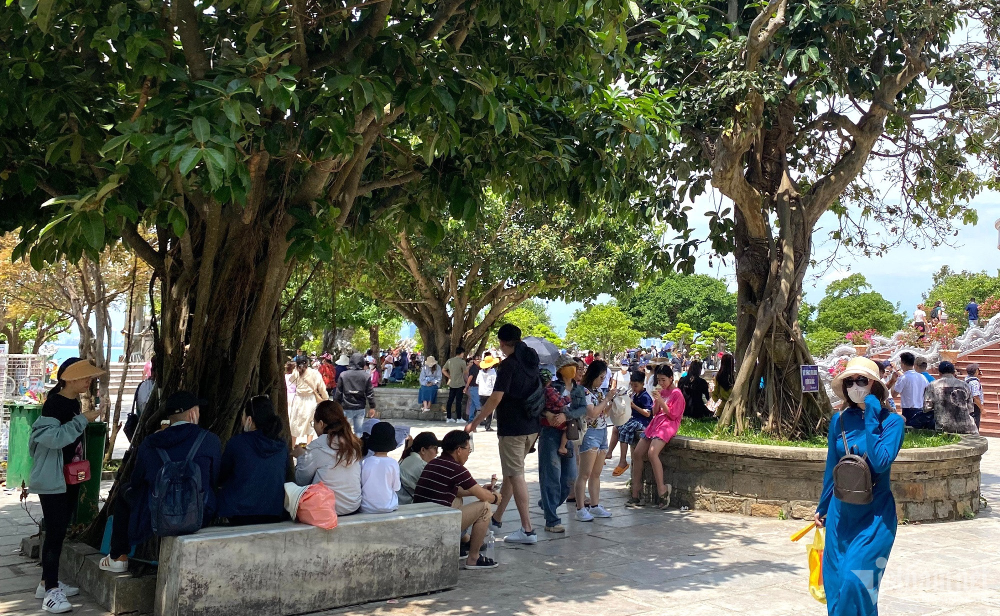 Hình ảnh du khách đổ về chùa Linh Ứng tham quan