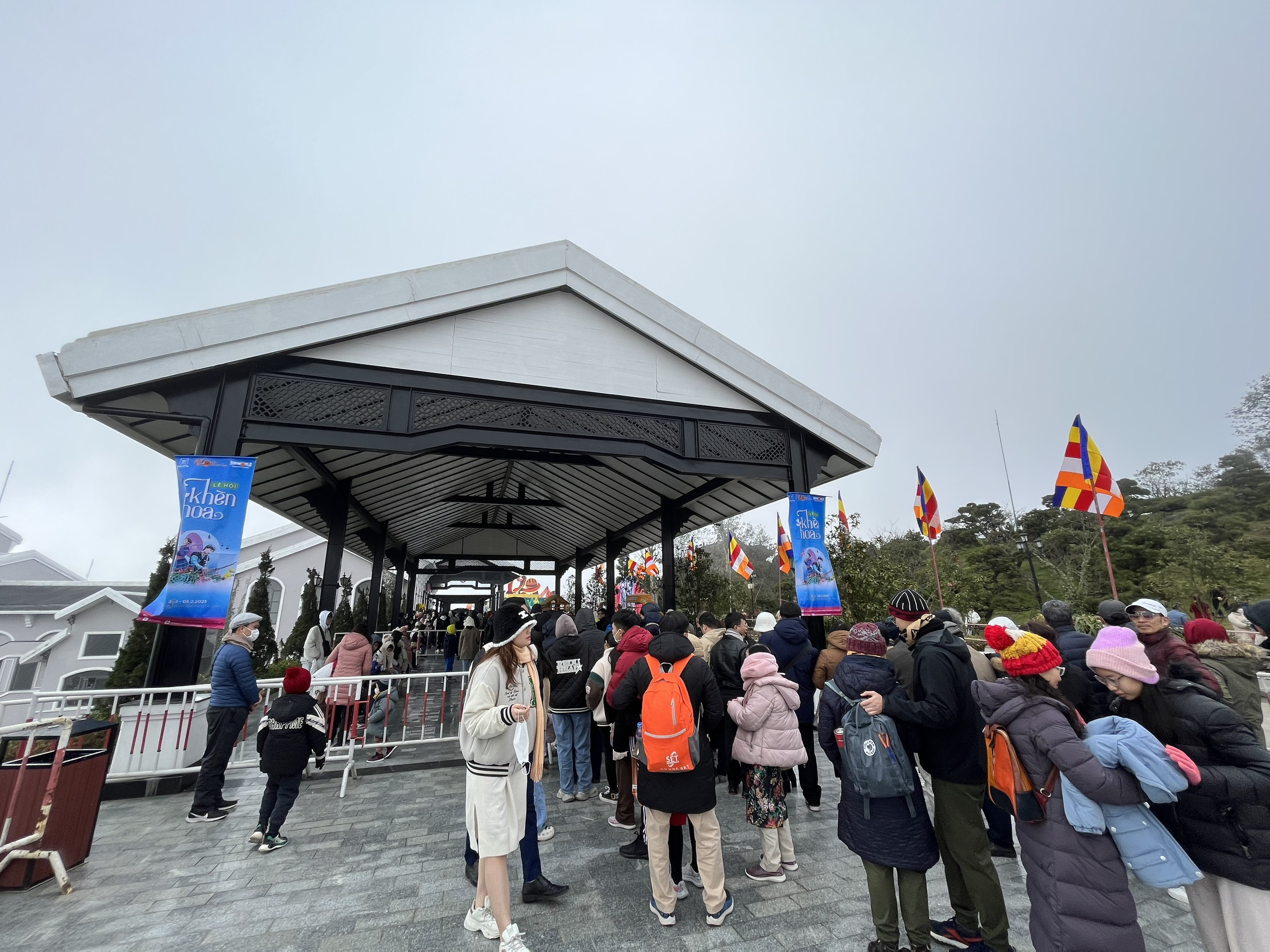 Theo ghi nhận của PV VietNamNet, sáng ngày 25/1 (tức mùng 4 Tết Quý Mão 2023), rất đông du khách đổ về Sa Pa (Lào Cai) để tham quan đỉnh Fansipan trong dịp năm mới.Trời nắng nhẹ, nhiệt độ tăng hơn những ngày trước đó khiến nơi đây càng trở thành điểm du xuân lý tưởng cho đông đảo người dân và du khách thập phương tới tham quan, trải nghiệm, tận hưởng không khí Tết cổ truyền.Tại khu vực ga cáp treo lên đỉnh Fansipan, từ sáng sớm, người dân đã xếp hàng chật kín chờ mua vé. Dòng người xếp hàng dài cả cây số từ ga, chờ đến lượt mua vé và ra khoang cáp treo.Chị Thùy Chi (đến từ Hà Nội) cho biết, lượng khách đổ về đỉnh Fansipan trong ngày mùng 4 Tết rất đông nên phải chờ 2-3 tiếng mới lên được cáp treo. “Gia đình tôi và nhiều người khác xếp hàng xuyên trưa, tính đến giờ là hơn 3 tiếng đồng hồ vẫn đang đợi đến lượt lên cáp treo. Vì lượng khách quá đông, dòng người di chuyển chậm, chỉ nhích từng tí một”, chị Chi nói.Rất đông du khách thập phương, cả người lớn lẫn em nhỏ chờ ở ga cáp treo, mong được lên tham quan đỉnh núi cao nhất Việt Nam trong kỳ nghỉ Tết Nguyên đán 2023.Du khách kiên nhẫn chờ vài giờ đồng hồ để mua được vé cáp treo lên đỉnh FansipanNhiều du khách tin rằng, việc có mặt trên “nóc nhà Đông Dương” trong những ngày đầu năm mang ý nghĩa lớn, thể hiện ý chí vượt qua thử thách và cầu mong năm mới suôn sẻ, thành công.Được biết, để phục vụ nhu cầu nghỉ dưỡng, trải nghiệm của du khách tăng cao trong dịp Tết năm nay, rất nhiều hoạt động hấp dẫn được tổ chức tại Sa Pa như: Hội Xuân mở cổng trời kéo dài trong các ngày nghỉ lễ, gồm các hoạt động: Biểu diễn nghệ thuật dân gian dân tộc Tày, trải nghiệm không gian văn hóa Tày (múa sạp, thổi xôi, giã bánh dày, gói bánh chưng tại nhà sàn chợ quê) từ ngày 26/1 - 5/2; Lễ rước đầu Xuân (Nghi lễ rước kiệu và cờ, lọng, bát bửu từ cổng khu du lịch đến chùa Trình - lên cáp treo - chùa Hạ) vào ngày 26/1; Lễ cầu Quốc thái dân an tại chùa Trình, chùa Hạ, chùa Thượng vào ngày 26/1; biểu diễn nghệ thuật của Đoàn Nghệ thuật Dân tộc tỉnh từ ngày 26/1 - 27/1; tặng giấy đỏ may mắn cho du khách tại chùa Trình; biểu diễn trống hội tâm linh và các tiết mục múa thiền tại sân khấu chùa Trình từ ngày 27/1 - 28/2.