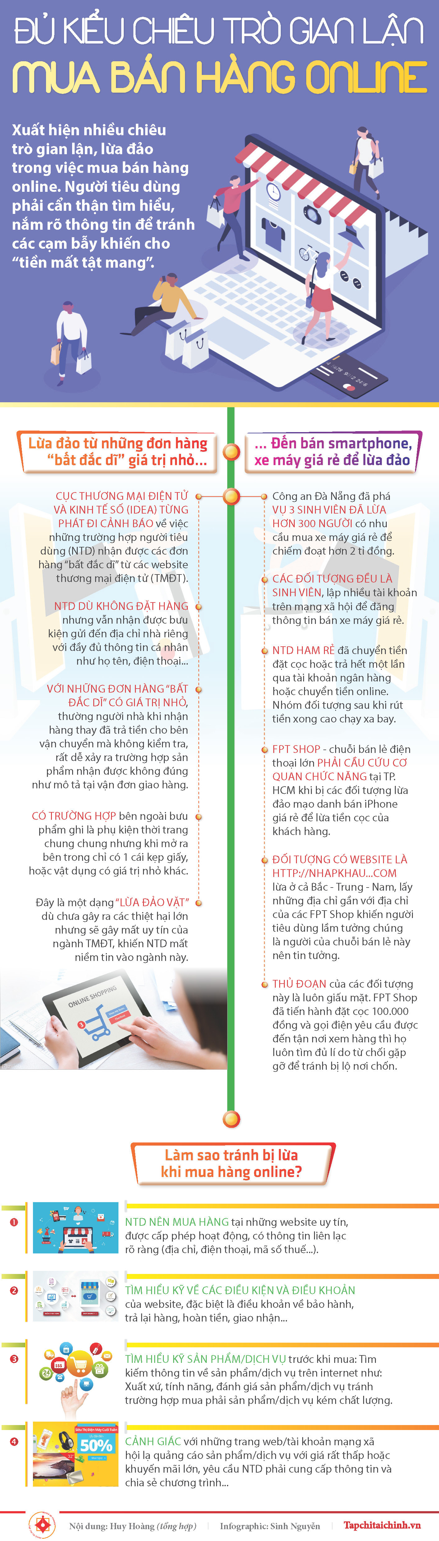Xuất hiện nhiều chiêu trò gian lận, lừa đảo trong việc mua bán hàng online. Người tiêu dùng phải cẩn thận tìm hiểu, nắm rõ thông tin để tránh cạm bẫy khiến cho "tiền mất tật mang".
