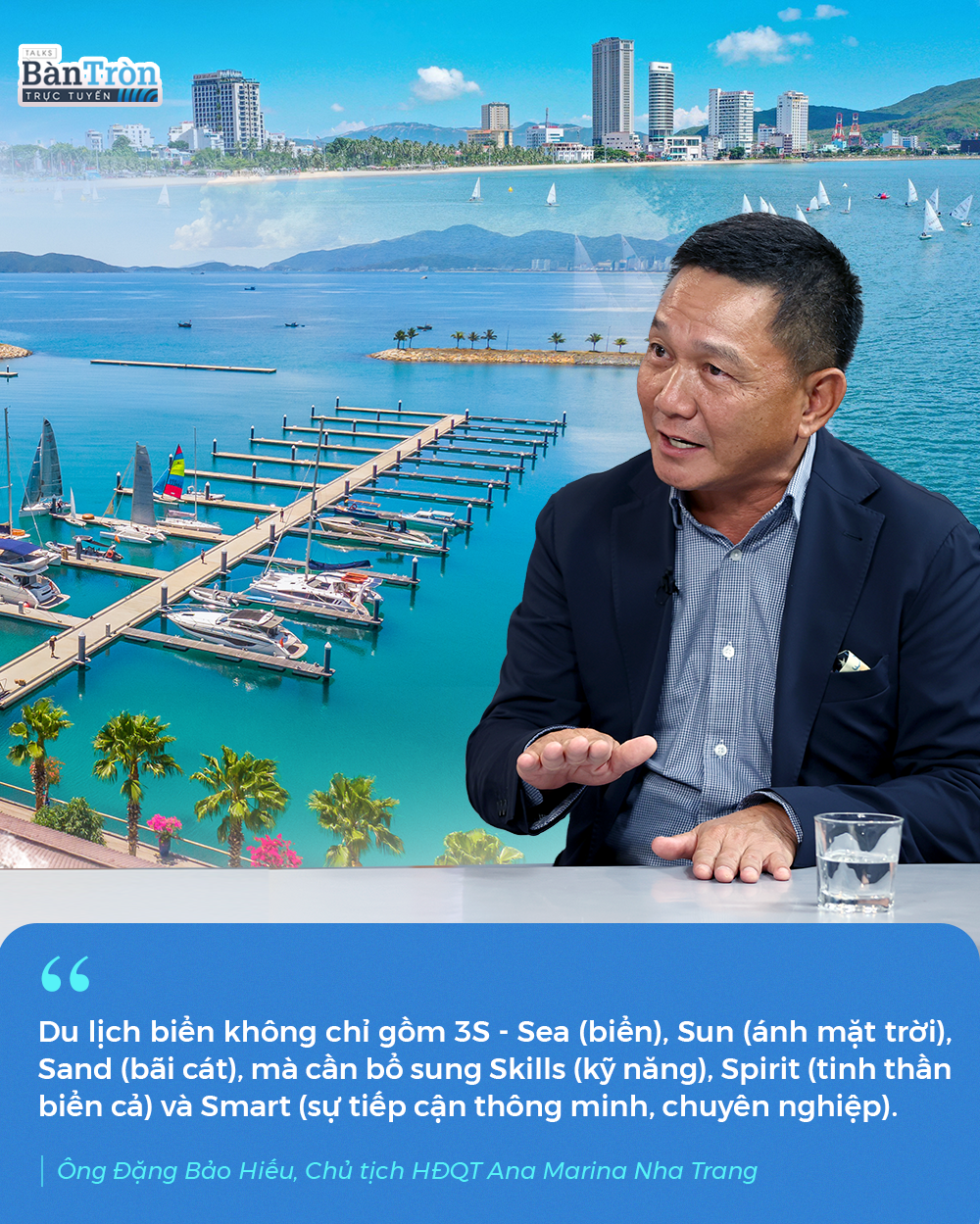 Nếu lấy Sea làm trung tâm thì chúng ta cần thêm nhiều chữ S khác như Skills (kỹ năng), Spirit (tinh thần biển cả) và Smart (sự tiếp cận thông minh, chuyên nghiệp). Khi đưa du lịch tham gia bất cứ môn thể thao dưới nước nào, doanh nghiệp không chỉ đầu tư trang thiết bị mà phải đầu tư cơ sở hạ tầng chuyên nghiệp để kiểm soát toàn bộ rủi ro có thể xảy ra, hỗ trợ y tế, cứu hộ, cứu nạn… Trước nay, các sự kiện thể thao dưới nước của chúng ta thường manh mún, tổ chức tự phát. Chúng ta là quốc gia đi sau trong phát triển du lịch biển thì cần phát huy tính Smart, tức là học hỏi sự chuyên nghiệp từ các nhà đầu tư, doanh nghiệp, nhà tổ chức nước ngoài.