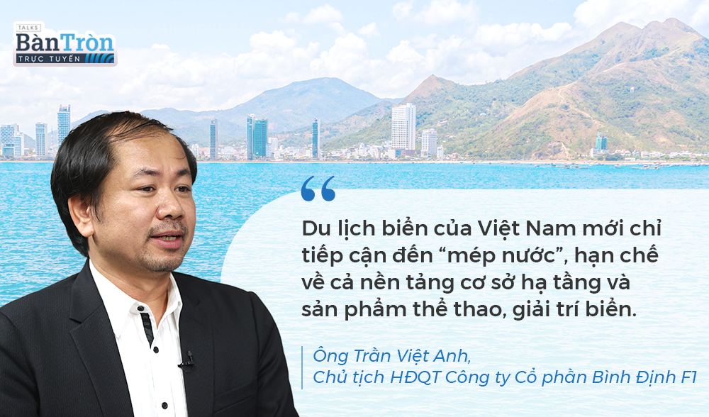 Ông Trần Việt Anh: Theo tôi đây đúng là thực trạng chung tại các địa phương có biển tại Việt Nam. Du khách tới các vùng biển chỉ ăn, ngủ, tắm biển là chính. Một thực tế phải nhìn nhận là các doanh nghiệp đang đầu tư thiên lệch, tập trung quá nhiều cho các dự án bất động sản ven biển như xây khu nghỉ dưỡng, khách sạn… mà không quan tâm đa dạng hóa các trải nghiệm thu hút du khách đến và quay lại.