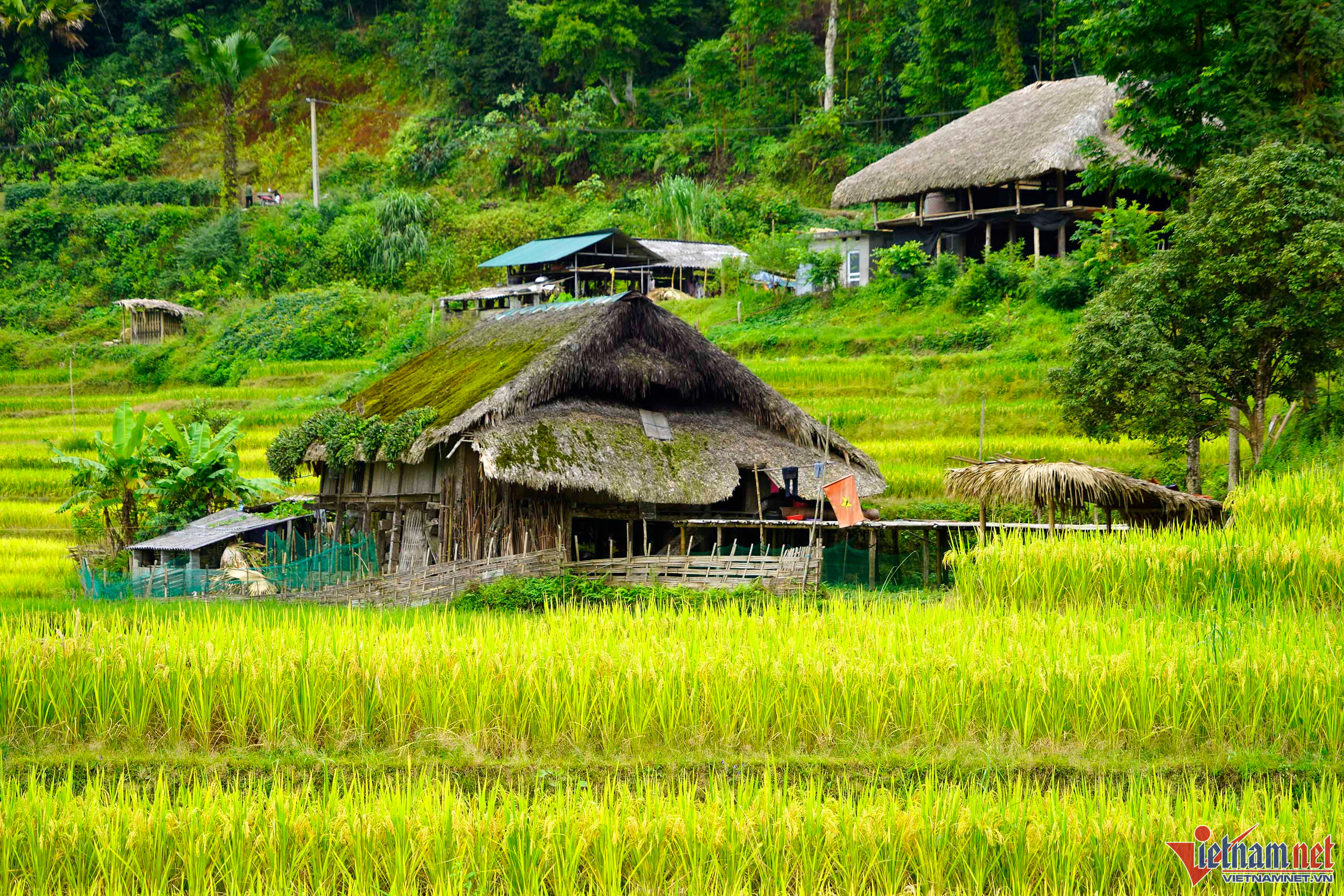 Cách TP Hà Giang gần 20km, thôn Xà Phìn (xã Phương Tiến, Huyện Vị Xuyên, Hà Giang) có cảnh sắc thiên nhiên vô cùng đặc sắc.Dựa lưng trên dải Tây Côn Lĩnh, thôn Xà Phìn có gần 300 nhân khẩu người Dao. Nơi đây có những thửa ruộng bậc thang óng ả khi mùa về. Với độ cao khoảng 1.000m so với mực nước biển, nơi đây có khí hậu mát mẻ vào mùa hè, mùa thuMỗi độ thu về, mảnh đất hoang sơ Xà Phìn thu hút nhiều du khách tìm đến tận hưởng khí hậu trong lành, đắm chìm trong khung cảnh núi rừng hùng vĩ khoác tấm áo màu lúa chínLúa đã chín đến độ được thu hoạch, bông lúa trĩu hạt hứa hẹn một vụ mùa bội thu cho bà con người Dao ở Xà PhìnKhông kém gì mùa vàng ở Hoàng Su Phì hay Mù Cang Chải, ruộng bậc thang ở Xà Phìn hiện lên trong nắng vàng và mây trắng vờn lưng chừng đỉnh núiXà Phìn có vẻ đẹp rất khác với Hoàng Su Phì hay Mù Cang Chải khi điểm tô vào đó là những mái nhà rêu được bao bọc xung quanh ruộng lúa chín vàngNhiều du khách hiện đã tới Xà Phìn ngắm lúa chín, chụp những bức ảnh trước khi lúa được thu hoạchMùa vàng trên Xà Phìn óng ả, xa xa phía chân trời là những áng mây vờn đỉnh Tây Côn LĩnhCó thể nói, thời điểm hiện tại Xà Phìn đẹp nhất trong năm khi ruộng bậc thang được nhuộm vàngNếu đã quen thuộc với những cung đường trên cao nguyên đá Đồng Văn, du khách có thể tìm về Xà Phìn để trải nghiệm khung cảnh nên thơ, bình yên ở phía Bắc của Hà Giang