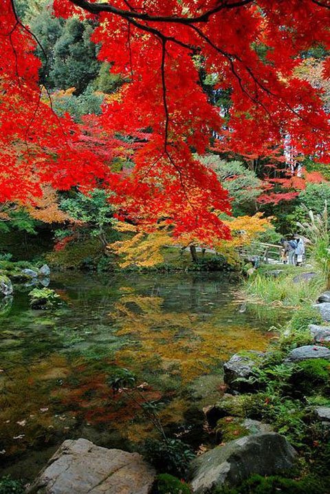 Người Nhật thường nói: “Đến Kyoto để ngắm mùa thu và đến Osaka để thưởng thức ẩm thực”. Thu nước Nhật vô cùng quyến rũ. Vùng ngoại ô Kyoto, trong đó quận Arashiyama là nơi có mùa thu điển hình. Từ cầu Togetsukyo, có thể chiêm ngưỡng vẻ đẹp của những ngôi đền nằm yên bình giữa bức tranh lá cây đủ sắc màu. Nhưng tuyệt vời nhất là khi bạn đứng từ đỉnh núi, nơi tọa lạc của chùa Kiyomizu nhìn xuống thung lũng và sườn núi ngập sắc vàng, đỏ.