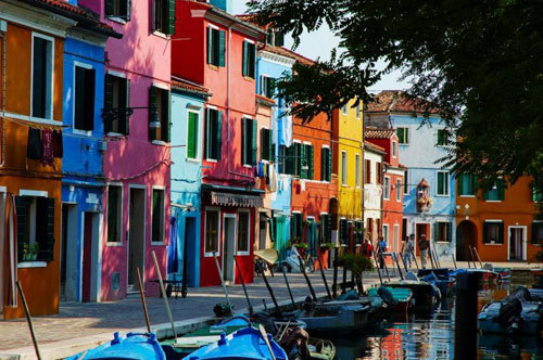 | Những ngôi nhà ở đảo Burano. Cùng với Murano, Lido và Torcello, đây là một trong những hòn đảo chính của Venice. |