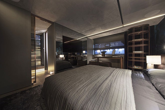 Bên cạnh khu vực quán bar là không gian dành riêng cho sinh hoạt gia đình, ấm cùng với ghế sofa bọc da và TV màn hình phẳng. Khu vực còn lại có bếp điện để nấu nướng. Chỗ ngủ qua đêm có sẵn ở dạng cabin chính và cabin khách. Phòng tắm chính có vòi sen lớn, với tủ quần áo không cửa ngăn.