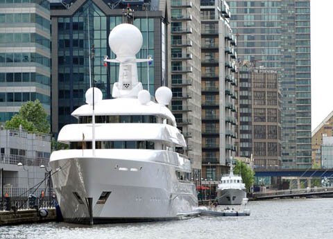 7 du thuyền khổng lồ, với chiếc lớn nhất dài tới 126m, đã thống trị bến cảng West India Quay ở Đông London, nơi neo cố định có giá lên tới 9.000 bảng Anh một ngày, bằng một phần ba thu nhập bình quân một năm của người dân Anh.