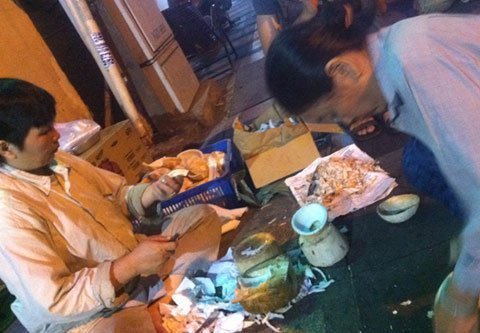 Ngày 16-1, bà Dung cùng hai phụ nữ tập kết hàng loạt bao dừa phế thải. Nhiều trái dừa đã bốc mùi chua được bà Dung đổ thẳng từ bao thu gom xuống lề đường. Không ít trái dừa bị bể, cơm dừa dính đầy đất bụi được bà dùng giấy vệ sinh lau sơ sài. Nhiều trái dừa được bổ ra tách lấy cơm đã mốc, kiến bám đầy. Theo tìm hiểu, mỗi ngày bà Dung thu gom về “lò” được khoảng vài trăm quả dừa. Sau khi nạo dừa ở lề đường Trần Quốc Toản, bà Dung mang dừa về nhà tiếp tục chế biến.