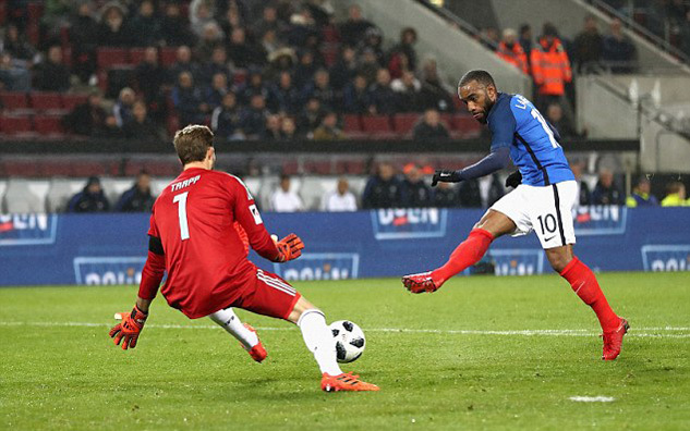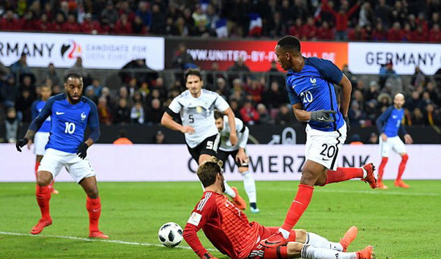 Lars Stindl ghi bàn ở phút bù giờ cuối cùng giúp Đức có trận hòa 2-2 với Pháp trên sân nhà, sau khi Lacazette hai lần xé lưới nhà ĐKVĐ Thế giới.
