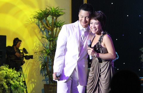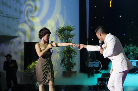 Sau đó anh chủ động cầm tay nữ ca sĩ