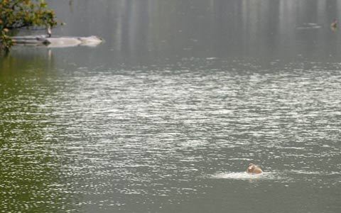 | Ngày 9/3, sau lẩn trốn thoát lưới của các cơ quan chức năng, cụ rùa lại nổi. Thế nhưng khoảng cách cụ nổi thường rất xa, ở giữa hồ. Ảnh: Hoàng Long |