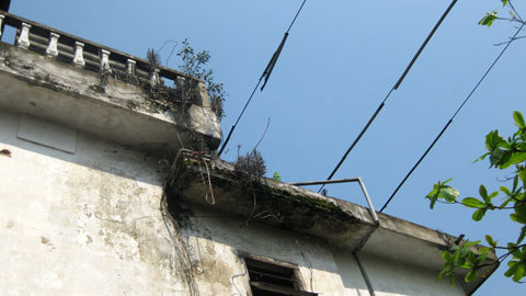 Tại hiện trường, dòng điện chạy qua sát gần ngôi nhà 2 tầng này và nhiều nhà khác trên trục đường Nguyễn Thái Học rất nguy hiểm.