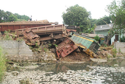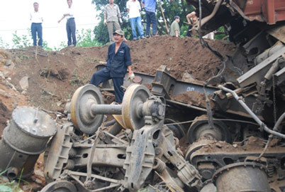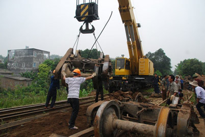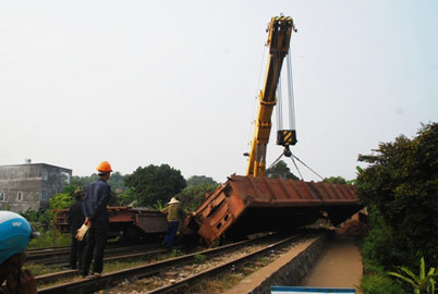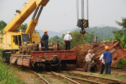 Một số hình ảnh về việc cứu hộ tàu đổ, tại ga Pom Hán(Lào Cai) sáng ngày 2/9:
