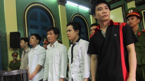 | Trần Nhạc Minh (đứng giữa) cùng đồng bọn đứng nghe tòa tuyên án |