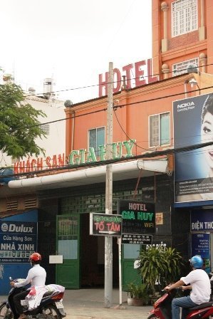 | Khách sạn Gia Huy – nơi xảy ra vụ tấn công bằng súng và bị cướp đi 1 xe gắn máy của khách thuê phòng. |