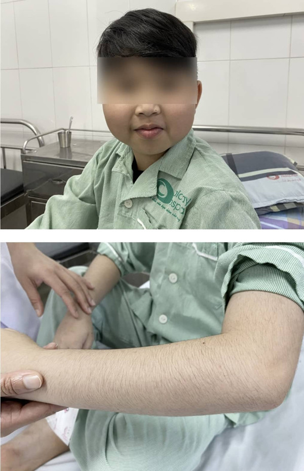 Các bác sĩ chẩn đoán trẻ bị suy tuyến thượng thận do dùng thuốc có corticoid, viêm mũi xoang cấp. Trẻ được điều trị bù canxi, sử dụng thuốc hydrocotisol.