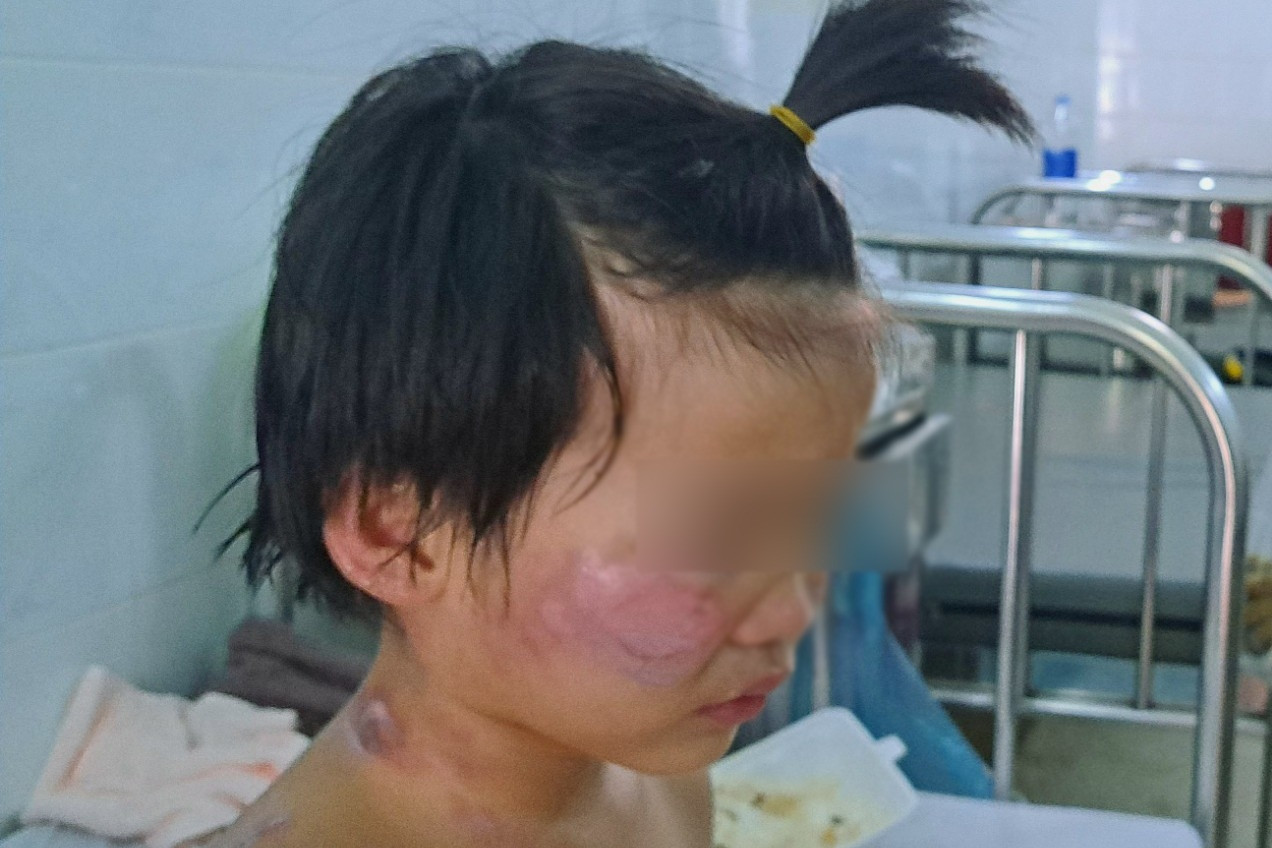 Tại đây, các bác sĩ chẩn đoán cháu D. bị bỏng độ III, diện tích 15%, chủ yếu ở vùng mặt và cẳng tay phải. Cháu A. bị bỏng độ III với diện tích lên tới 60%, bao gồm toàn bộ vùng lưng, bụng, bàn tay, bẹn, bộ phận sinh dục, mông và đùi.