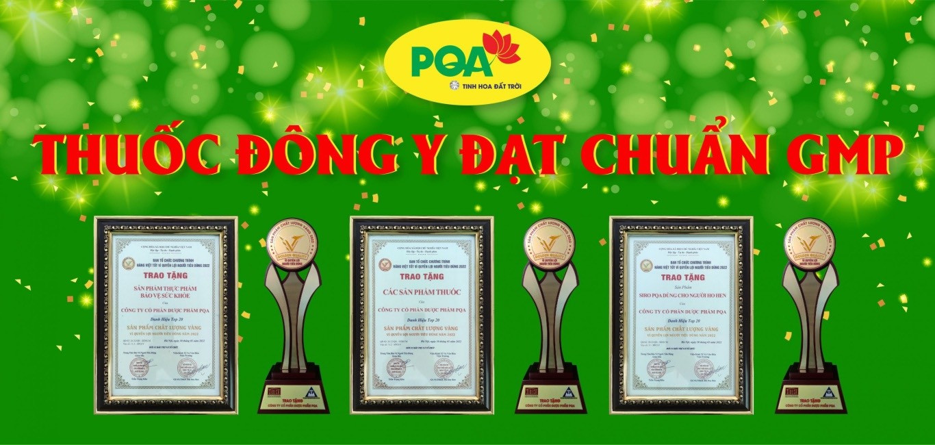 Hơn 10 năm cống hiến, dược phẩm PQA đã đạt được những giải thưởng như: Top 20 sản phẩm chất lượng vàng vì quyền lợi người tiêu dùng 2022.