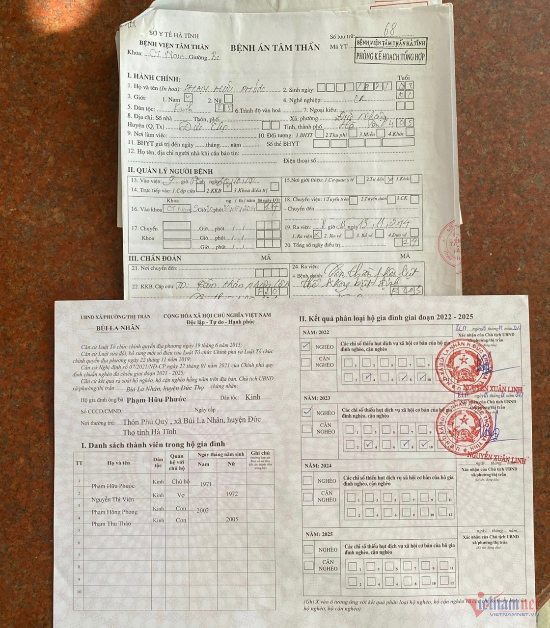 Mỗi ngày, ông Phước, chồng bà Viện phải uống nhiều loại thuốc (được bệnh viện huyện cấp miễn phí), đặc biệt là thuốc an thần để giữ trạng thái tỉnh táo. Những lúc bất thường, ông không kiểm soát được bản thân, tự lấy thuốc uống không theo đơn kê khiến bà Viện cùng các con rất lo lắng.