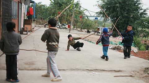 Long Biên, Hà Nội phải nghỉ học vì quá lạnh. Ở nhà, các em nghĩ ra trò chơi gậy