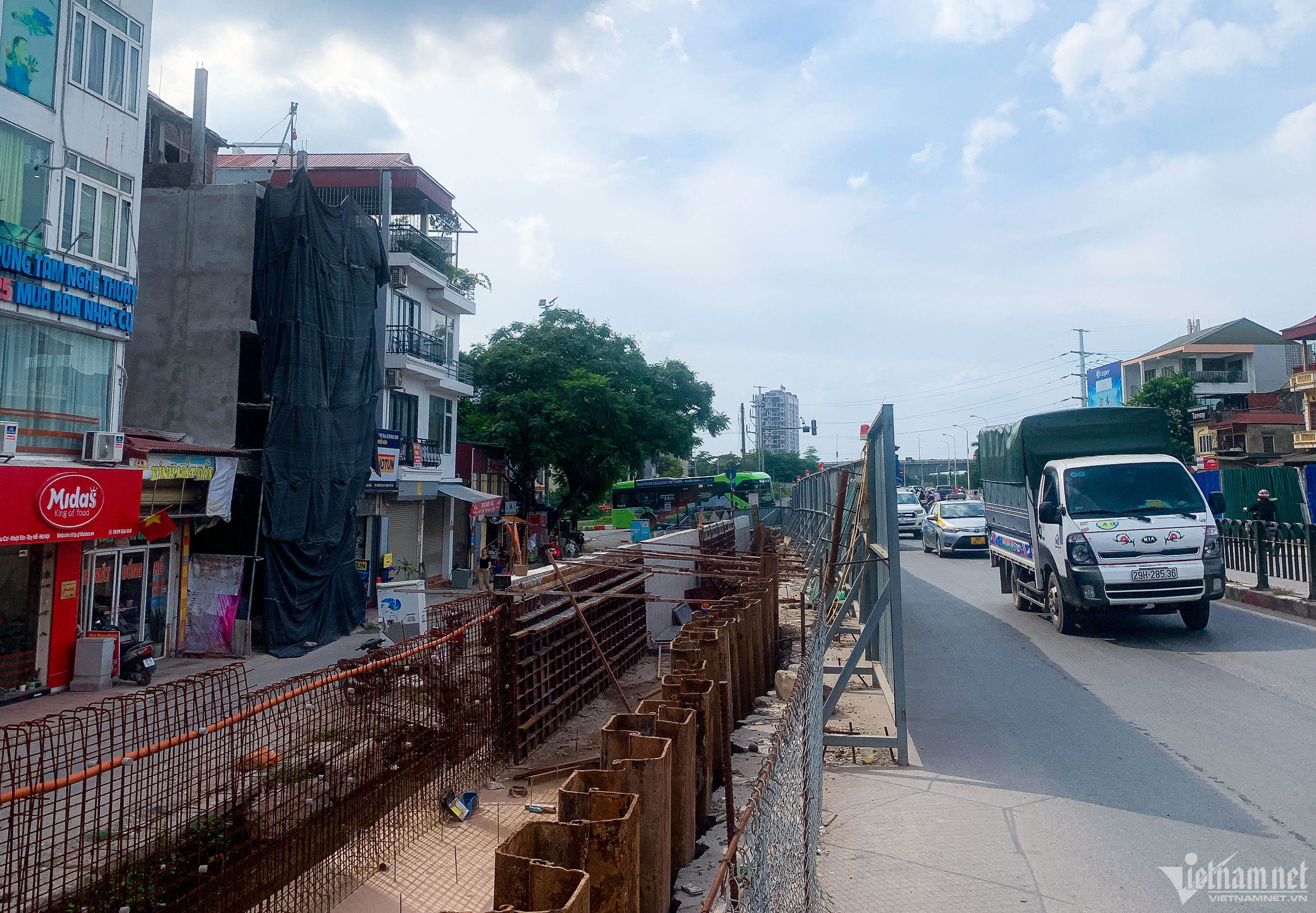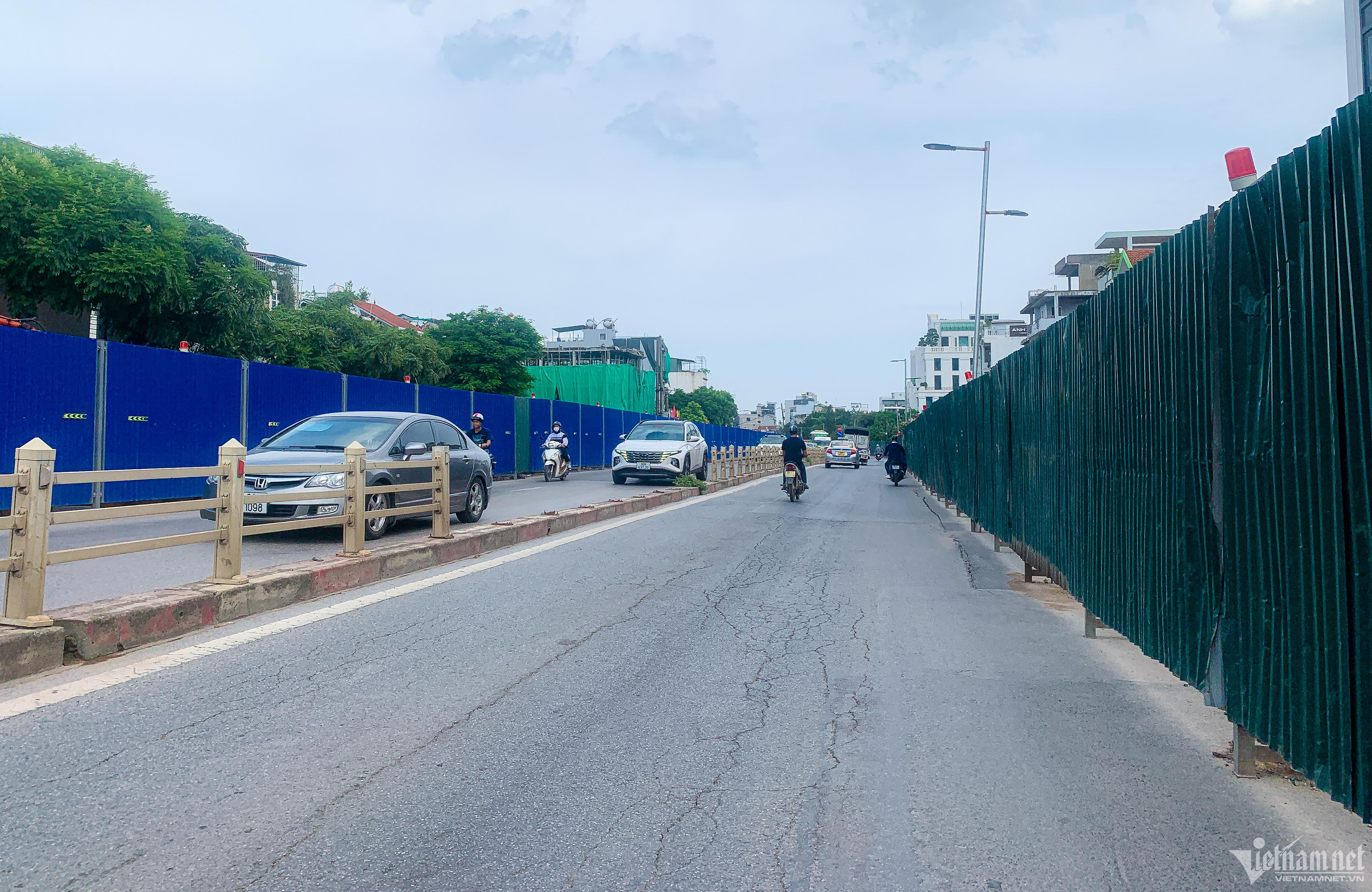 Theo ghi nhận của PV VietNamNet, dọc đường đê hữu Hồng đoạn từ khách sạn Thắng Lợi đến nút giao cầu Nhật Tân vẫn còn nhiều đoạn chưa rõ hình hài.