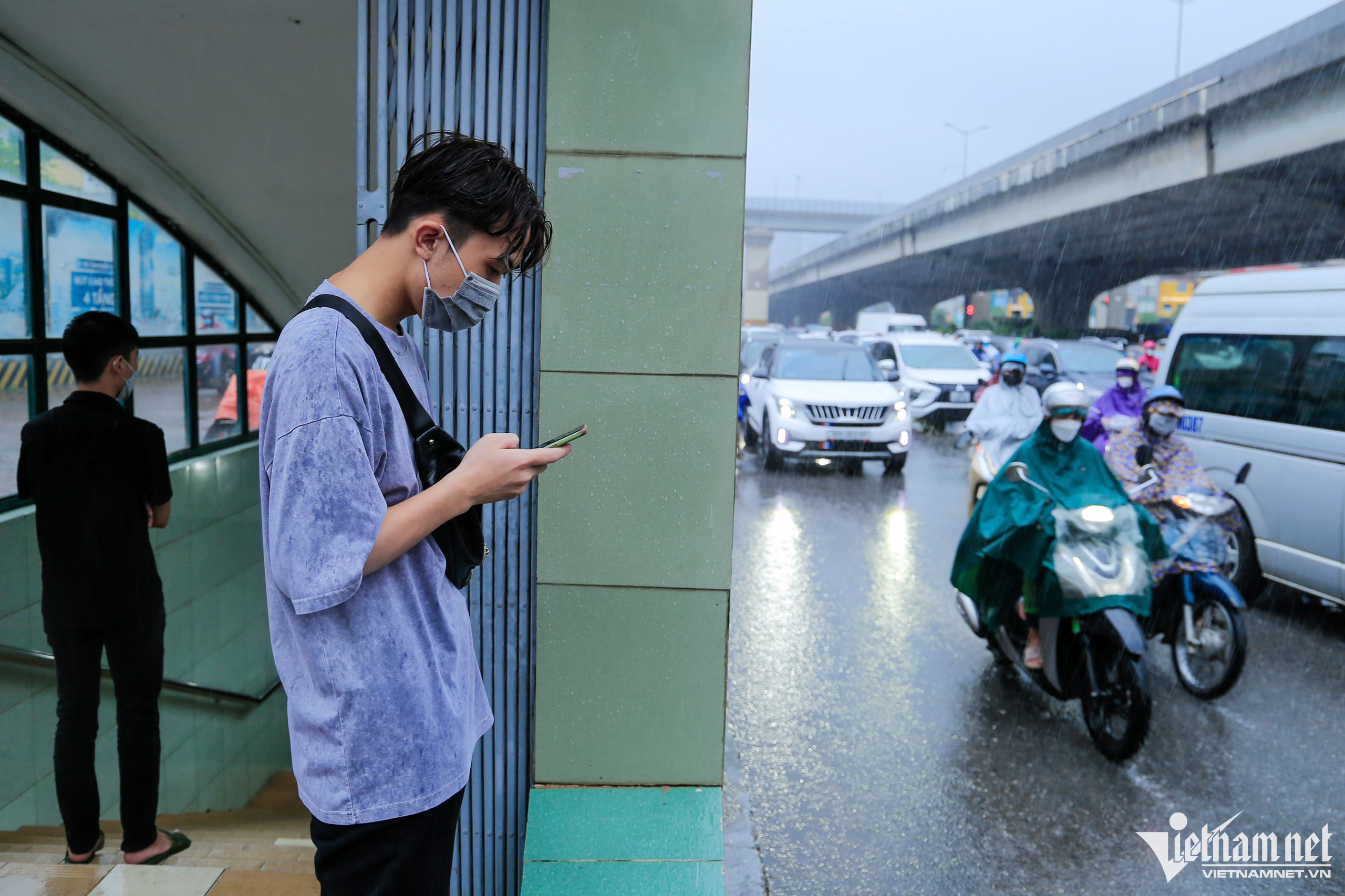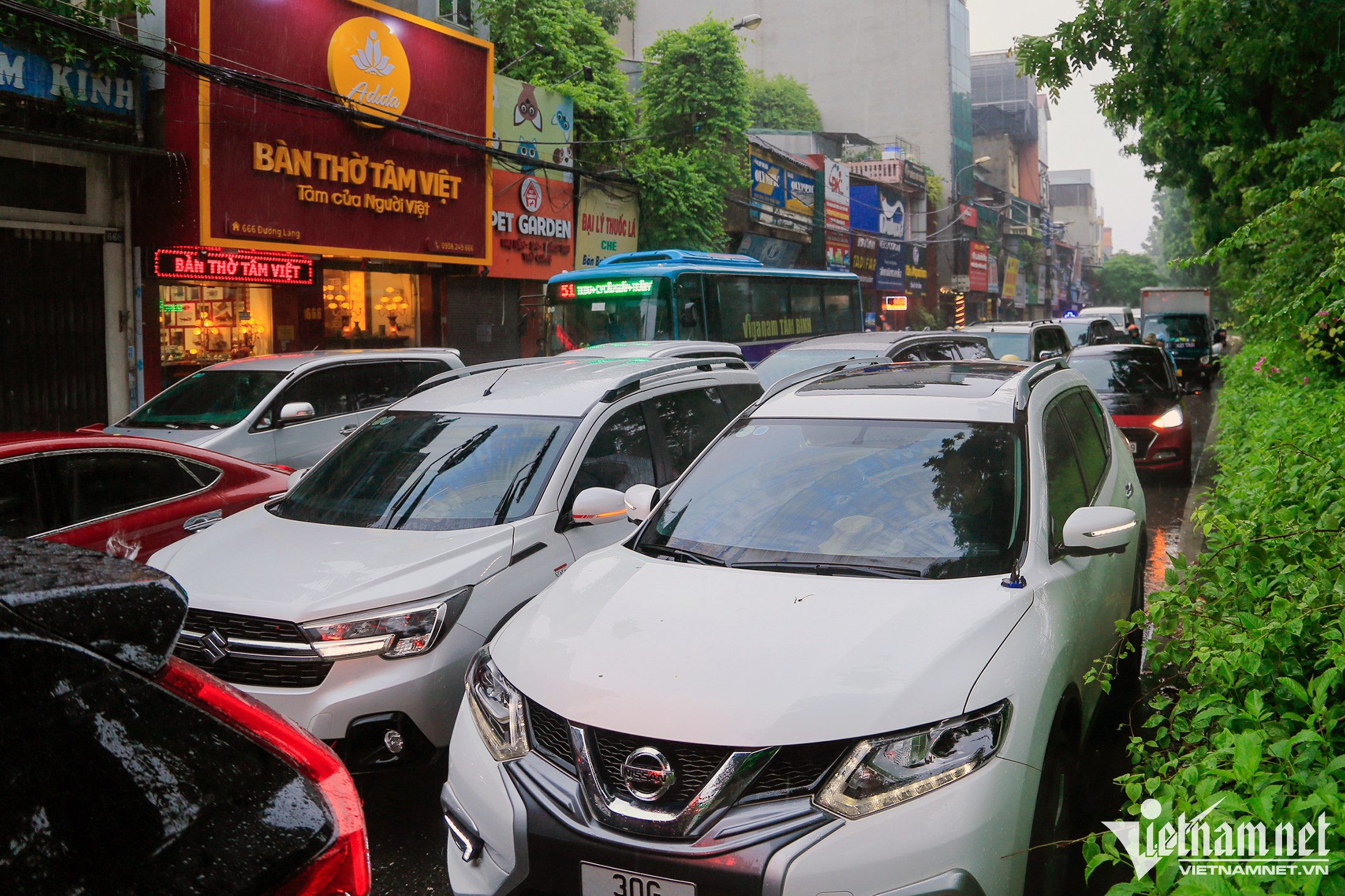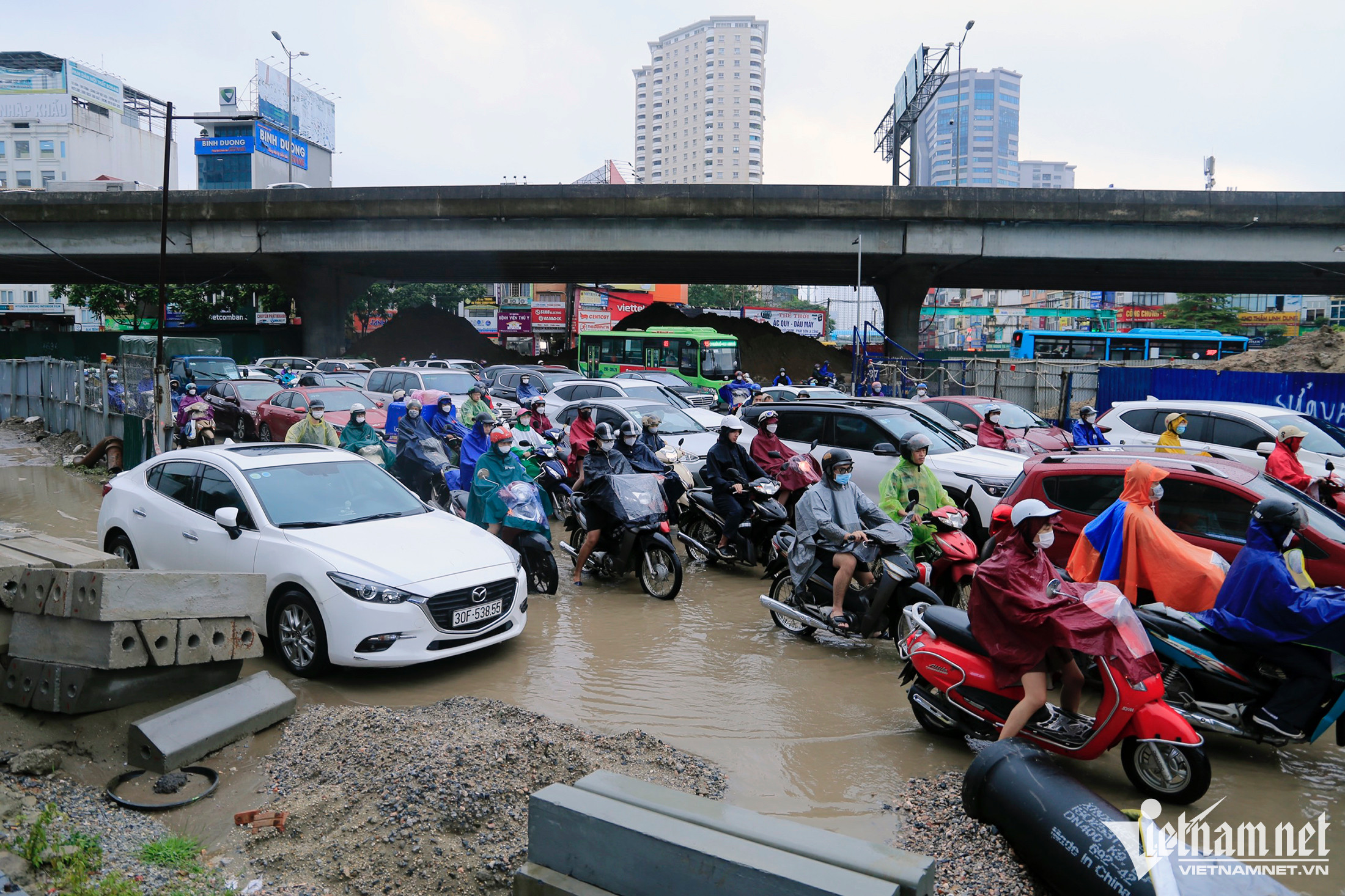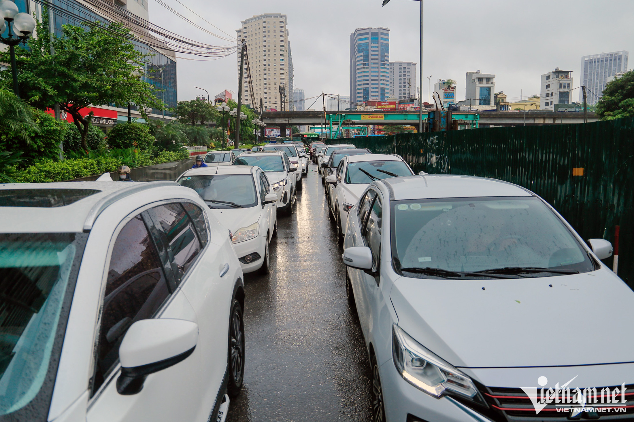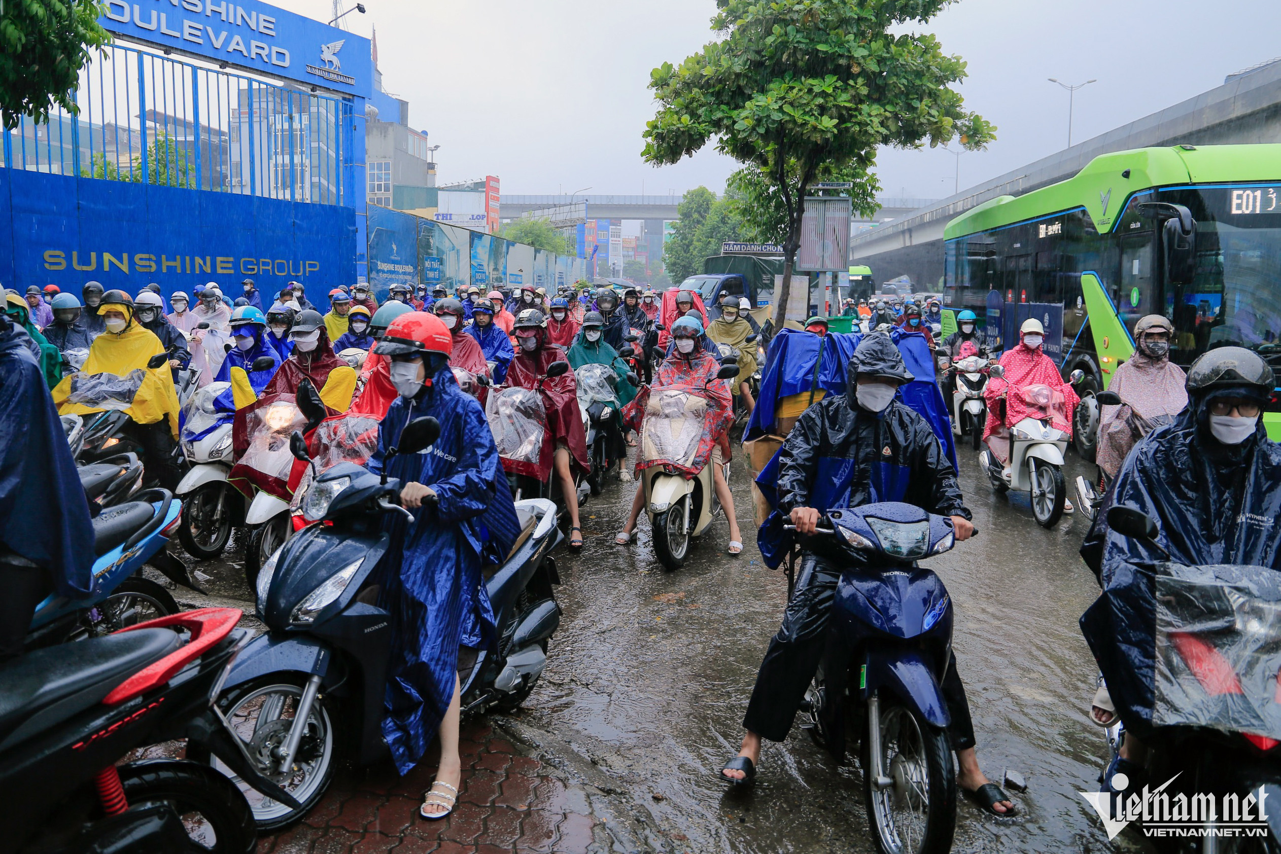 8h30, cảnh ùn tắc kéo dài nhiều km tại đường Nguyễn Trãi hướng đi Nguyễn Xiển, Khuất Duy Tiến. Ôtô, xe máy không tuân thủ theo biển báo, dải phân cách cứng bị vô hiệu hóa. Phía xa có nhiều xe máy đột ngột chuyển làn Tại nút giao 4 tầng Nguyễn Xiển - Khuất Duy Tiến, hàng nghìn phương tiện nhích từng chút chờ lưu thông qua ngã tư. Do bị muộn giờ đi làm, nhiều người không còn cách nào khác đành phóng xe lên vỉa hè để vượt qua khu vực kẹt cứng.Hệ thống đèn tín hiệu bị vô hiệu hóa, ngã tư rối loạn, ôtô, xe máy tranh nhau vượt lên khi thấy có khe hở.Xe buýt là phương tiện di chuyển chính của Luận để đi làm từ quận Hà Đông lên khu vực Cầu Giấy. “Tôi đã đợi hơn 90 phút nhưng vẫn chưa có xe nào. Có thể hôm nay trời mưa, tắc đường, phương tiện công cộng di chuyển khó khăn”, nam thanh niên nói.9h tại đường Lê Văn Lương kéo dài, 2 hàng ôtô chật cứng. Một tài xế cho biết đã không thể nhúc nhích ở khu vực này gần 20 phút. Do lối vào Lê Văn Lương từ Khuất Duy Tiến có công trình làm hầm chui, các vũng nước xuất hiện, việc di chuyển của người đi xe máy trở nên khó khăn.Dưới đường chật ních người và phương tiện, trên xe buýt lại vắng vẻ, không ai phải đứng.Tài xế xe bus cho biết đã dừng đợi khoảng 30 phút để di chuyển qua đường Lê Văn Lương. "Tôi thấy do đường đang có công trình thi công, thêm trời mưa nữa việc ùn tắc không thể không xảy ra”, anh nói. Cảnh tương tự tại phố Kim Mã (quận Ba Đình). Từ 7h đến hơn 9h, nơi đây vẫn chưa hết ùn tắc.Dù biết rằng ra đường lúc này buộc phải đánh vật với giao thông và mất nhiều thời gian mới tới nơi cần đến, nhiều người không còn lựa chọn nào khác.9h50, cảnh ùn tắc kéo dài vẫn diễn ra tại đường Láng (quận Đống Đa).Ôtô chiếm toàn bộ các làn đường đánh bật người đi xe máy buộc phải leo lên vỉa hè tại tuyến đường này.