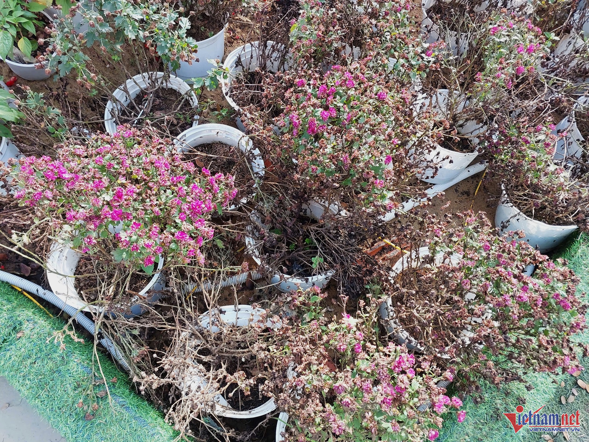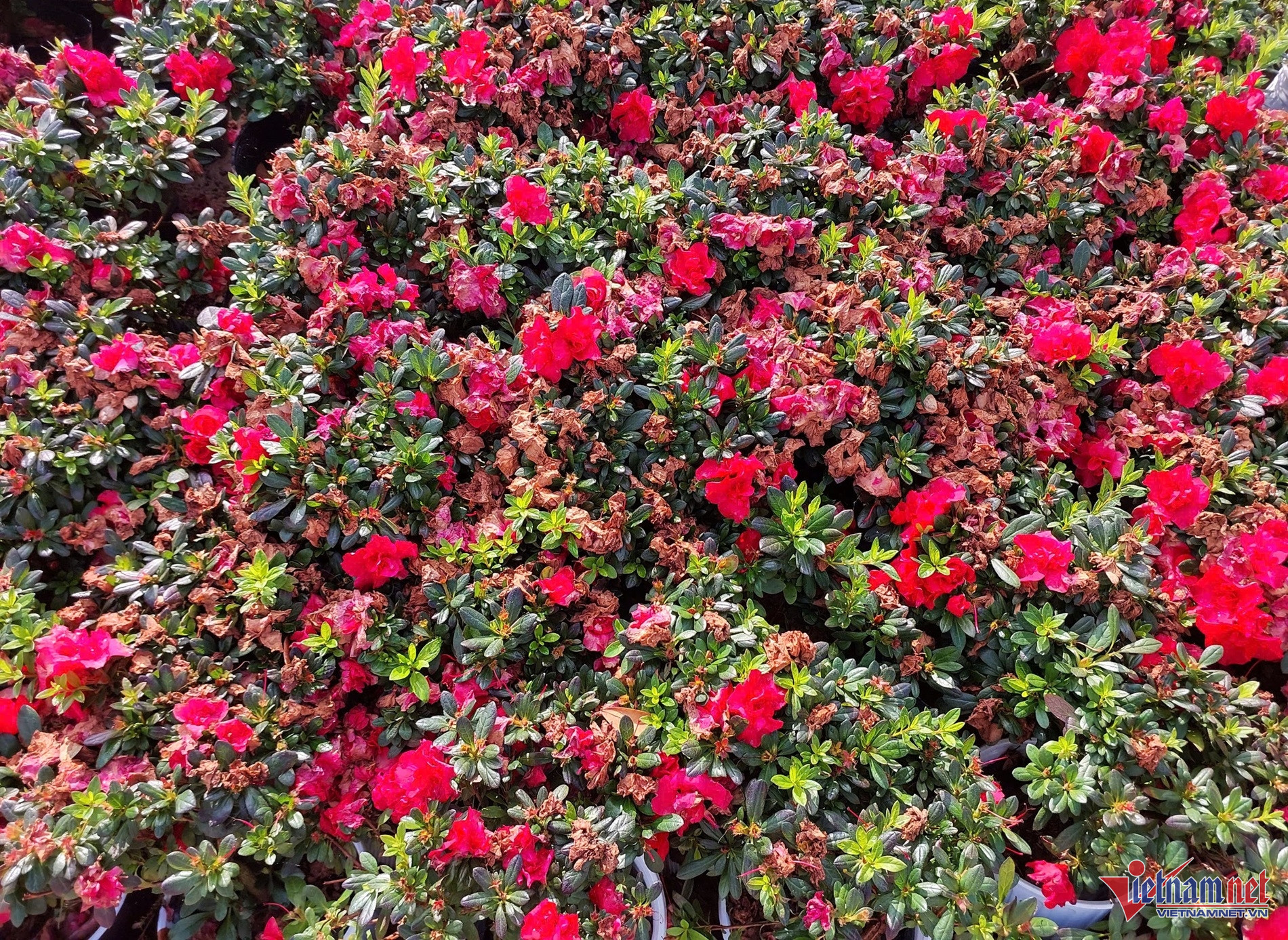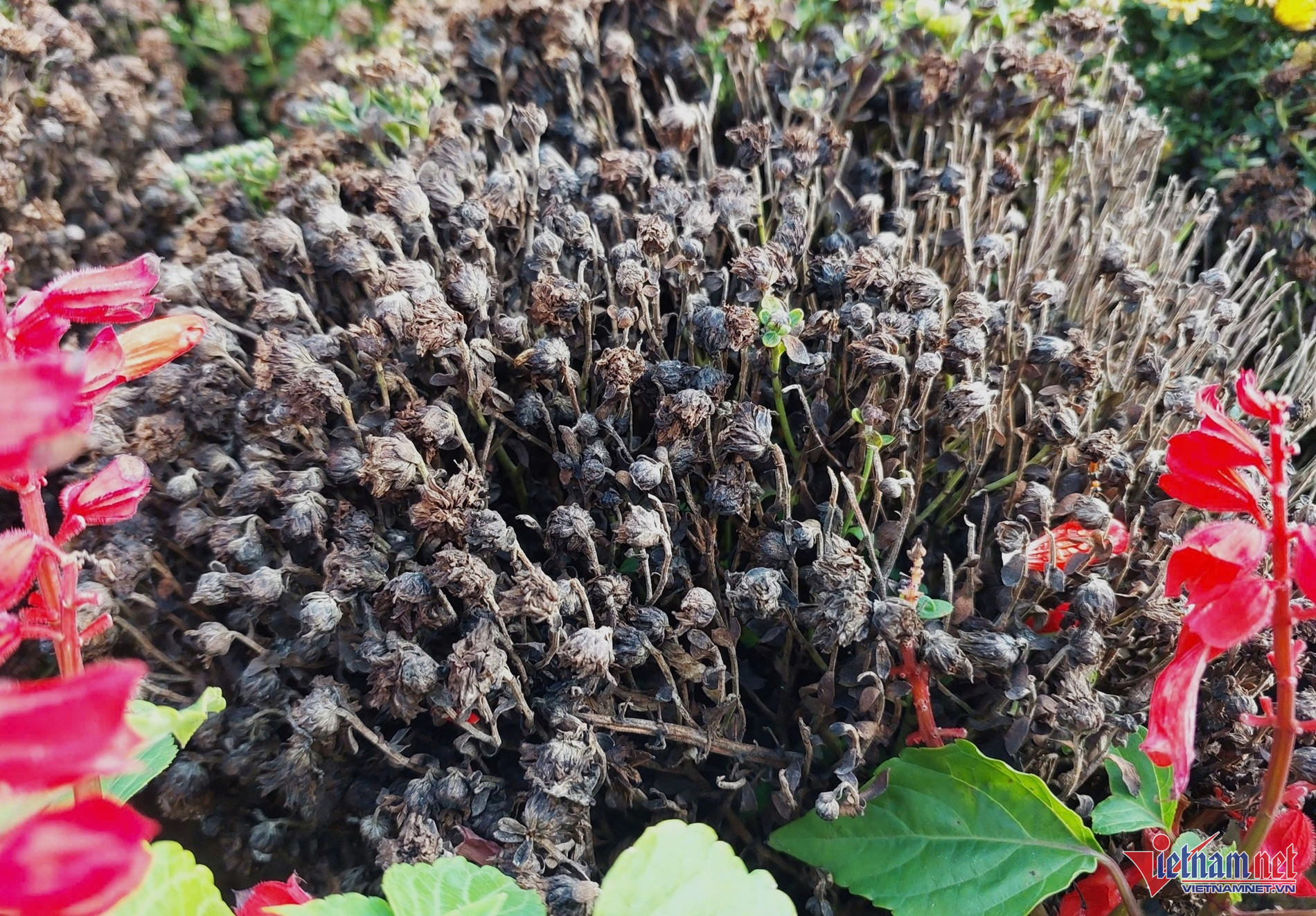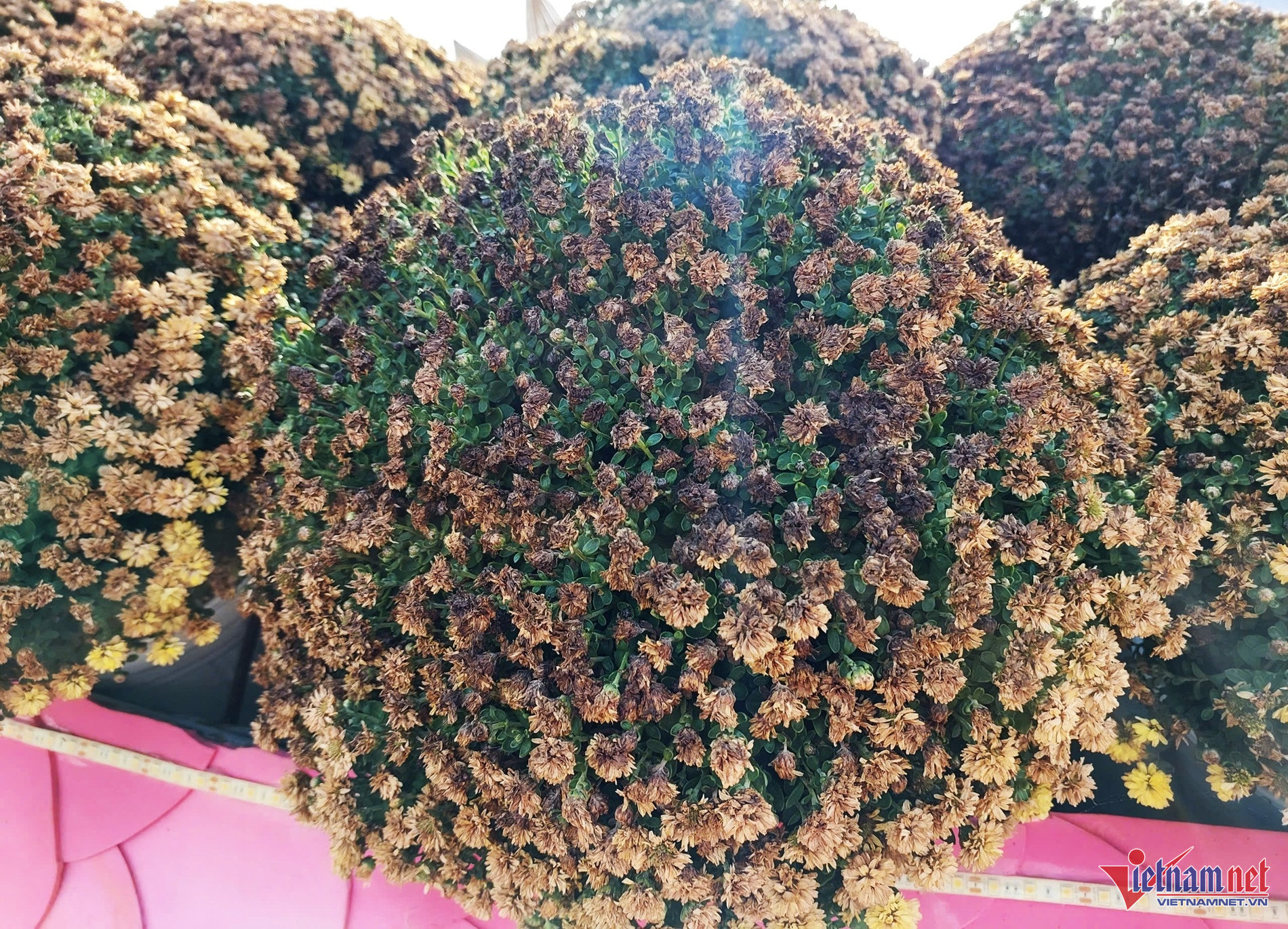 Ghi nhận của PV VietNamNet vào ngày 17/2, tại điểm trang trí hoa khu vực quảng trường đuôi cầu Rồng (quận Hải Châu), rất nhiều giỏ hoa đã tàn úa, héo khô, xơ xác sau gần 1 tháng trưng bày. Loại hoa bị hỏng nhiều nhất là cúc mâm xôi, còn hoa đỗ quyên cũng bắt đầu tàn úa khi thời tiết Đà Nẵng có nắng.