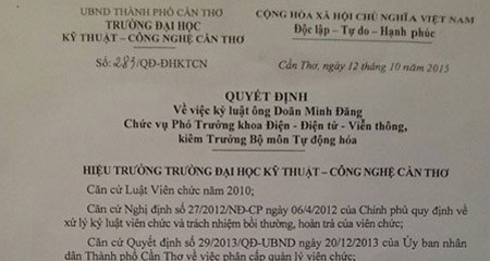 Ông Doãn Minh Đăng, giảng viên trường Đại học Kỹ thuật Công nghệ Cần Thơ, từng là người mang vòng nguyệt quế cuộc thi Đường lên đỉnh Olympya về Cần Thơ cách đây 10 năm, sẽ bị xử lý vì “nói xấu” nhà trường trên facebook.