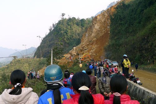 Từ khi vụ sạt lở xảy ra (16/2), do lượng đất đá quá nhiều, cộng thêm mưa dày hạt, trời tối mù mịt và đất đá vẫn tiếp tục sạt xuống nên công tác cứu hộ gặp rất nhiều khó khăn.