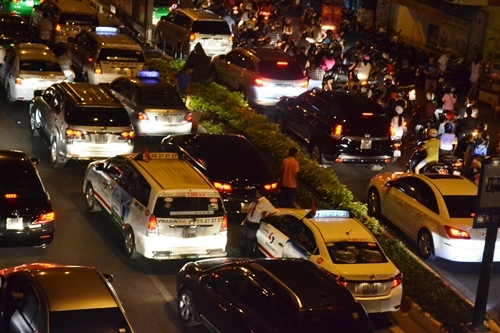 Tài xế taxi bất lực phải rời cabin, “tiến thoái lưỡng nan” không biết tiến hay lui ![]() Dòng xe kẹt cứng, nối dài và nhích từng mét… Xe ôtô tràn qua làn đường xe máy, khiến tình trạng kẹt xe càng trầm trọng..