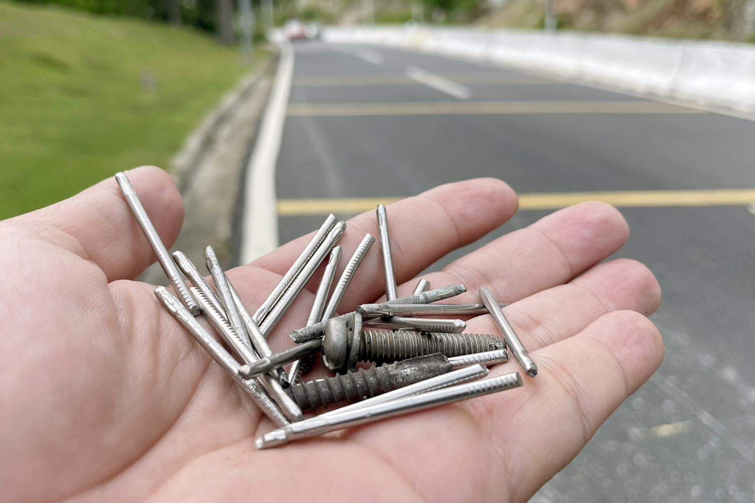 Đinh nhọn, chặt hai đầu rải đầy đường. “Tình trạng trên xuất hiện gần đây. Một số người địa phương phát hiện, chứng kiến cảnh xe bị thủng lốp phải dắt bộ”, người dân nói.