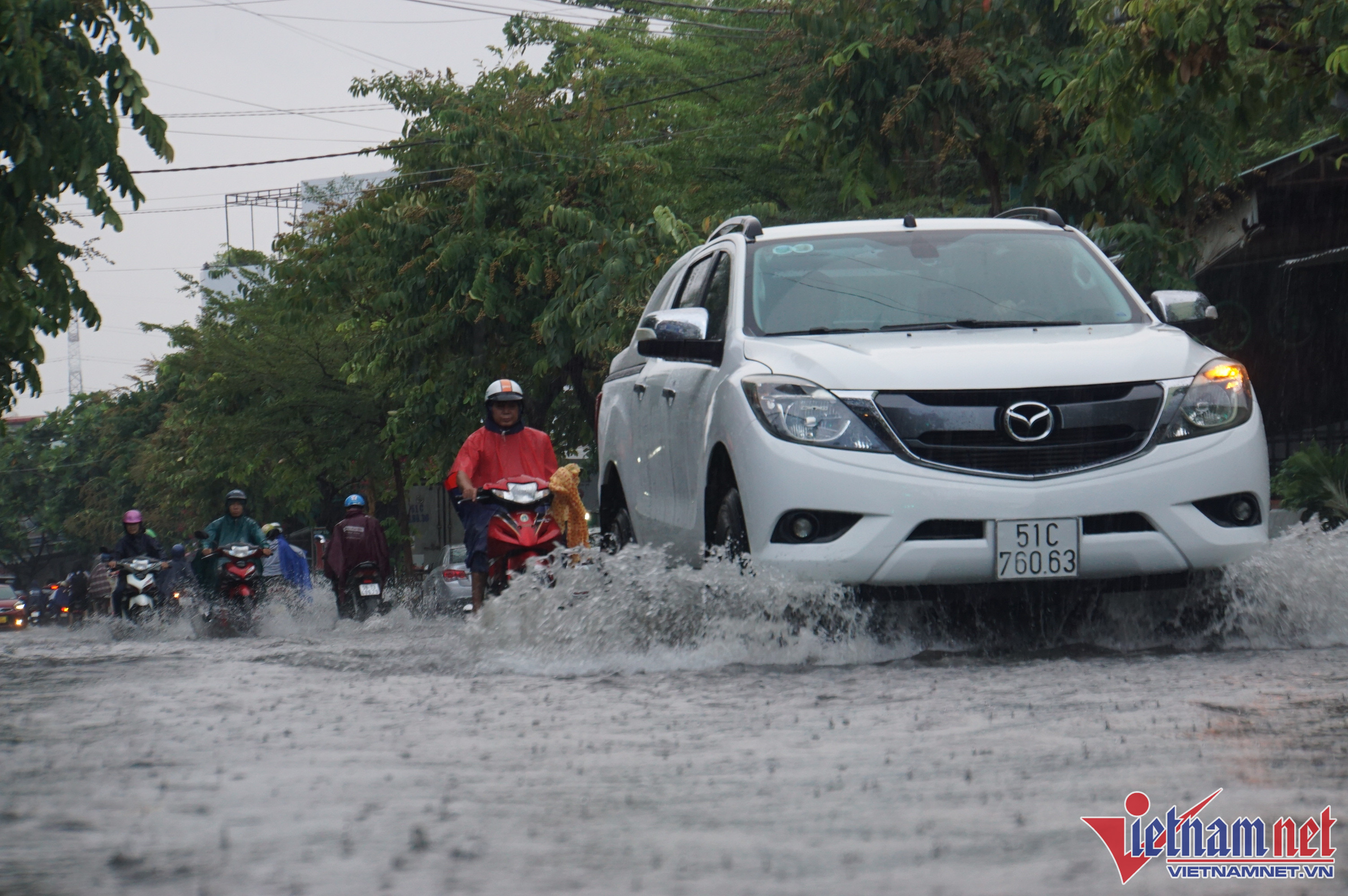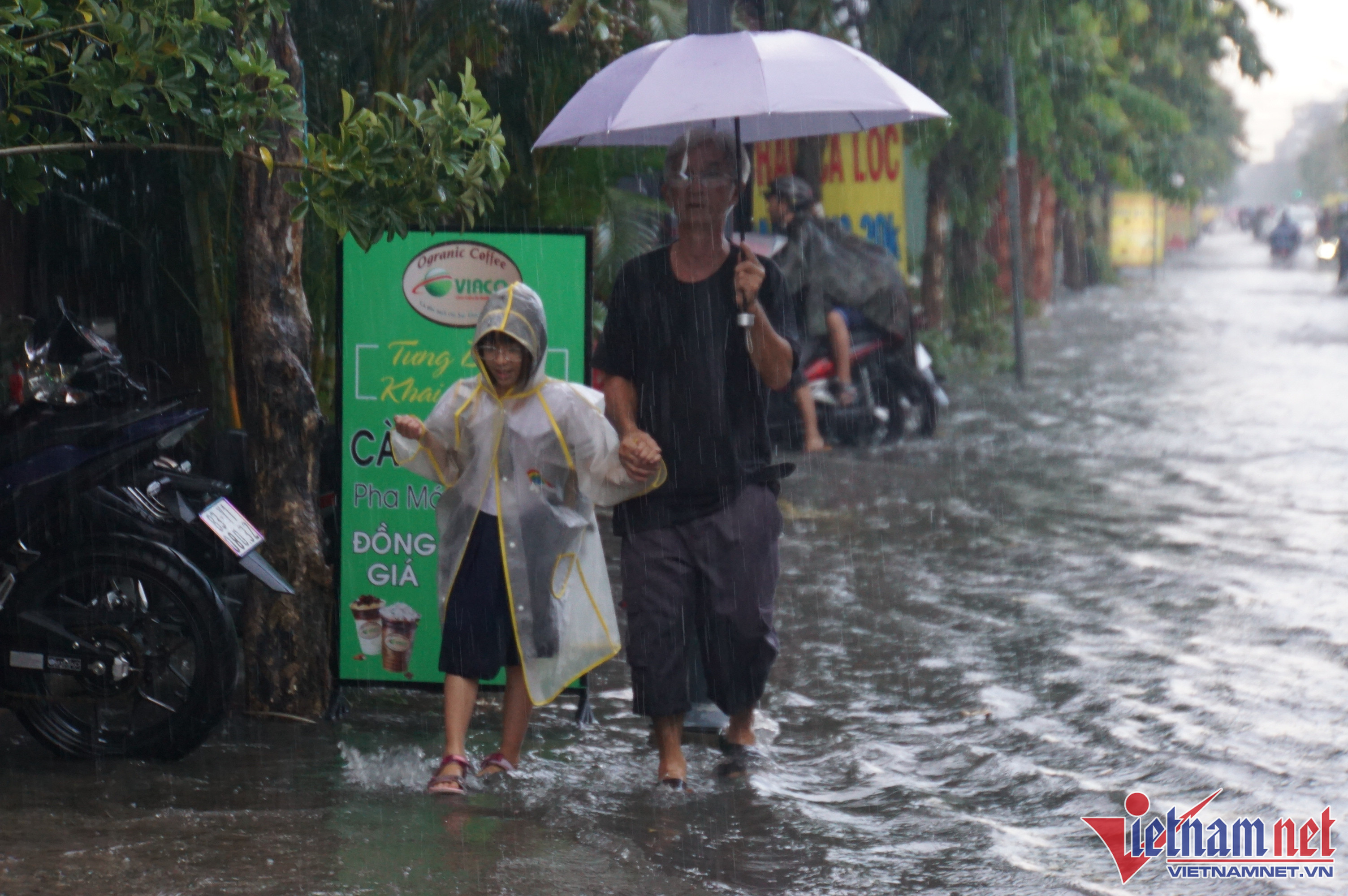 Nhiều tuyến đường xảy ra ngập do mưa quá lớn, nước thoát không kịp. Đường ngập như sông khiến việc đi lại của người dân gặp khó khăn, nhiều phương tiện bị chết máy...