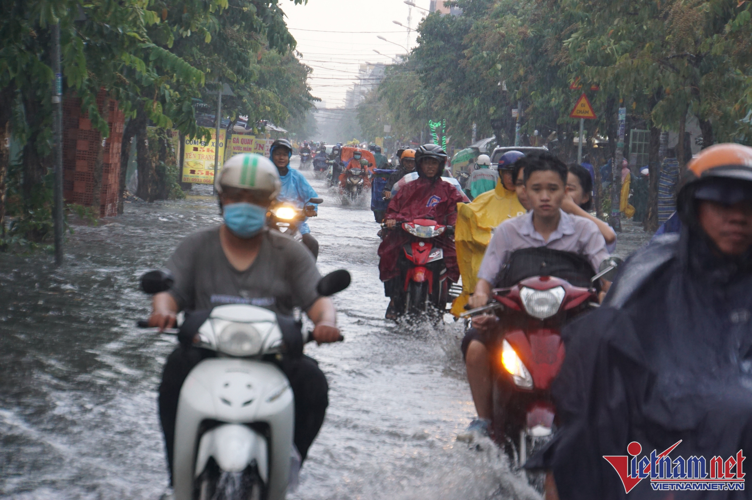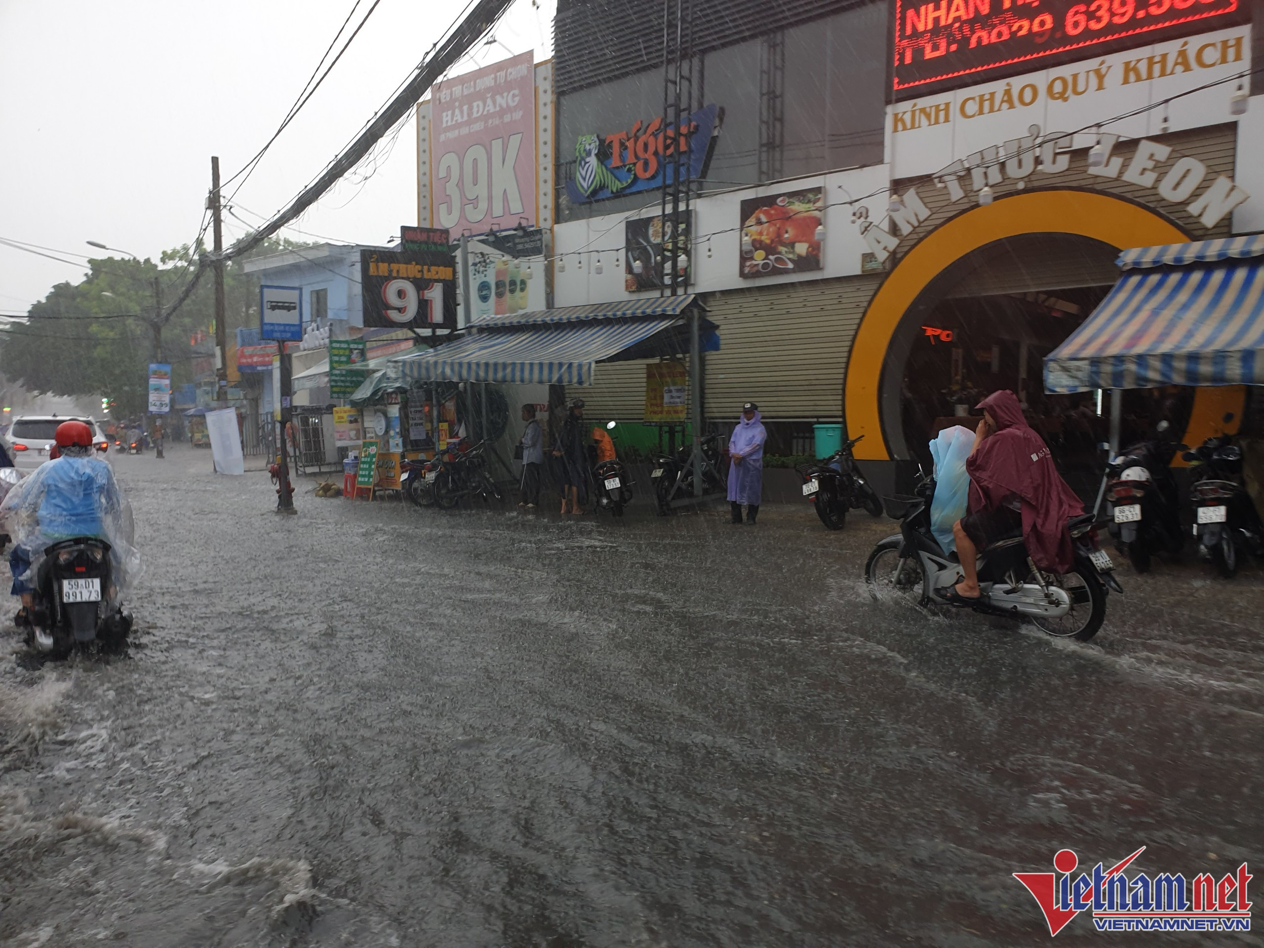 Người dân TP.HCM đón cơn 'mưa vàng' giải nhiệt vào cuối buổi chiều 3/4Mưa lớn kéo dài hơn 30 phút khiến nhiều tuyến đường ở TP.HCM ngập sâu. Đường Phạm Văn Chiêu (quận Gò Vấp) ngập lênh láng, nhiều người đi đường phải tấp xe lên lề đường để trú mưa.Hàng loạt tuyến đường như Nguyễn Văn Khối, Lê Đức Thọ, Nguyễn Văn Thọ (quận Gò Vấp), đường Song Hành, DN5, Nguyễn Văn Quá (quận 12)... cũng ngập sâu do nước không thoát kịpThời điểm mưa đã tạnh nhưng đường vẫn ngập như sông"Đây là trận mưa lớn giúp không khí mát mẻ trở lại sau thời gian dài phải chịu cảnh nắng nóng oi bức. Tôi cảm thấy rất vui...", anh Trần Văn Minh (ngụ đường Song Hành, phường Tân Hưng Thuận, quận 12) chia sẻ Một số phương tiện bị chết máy do di chuyển qua đoạn đường ngập