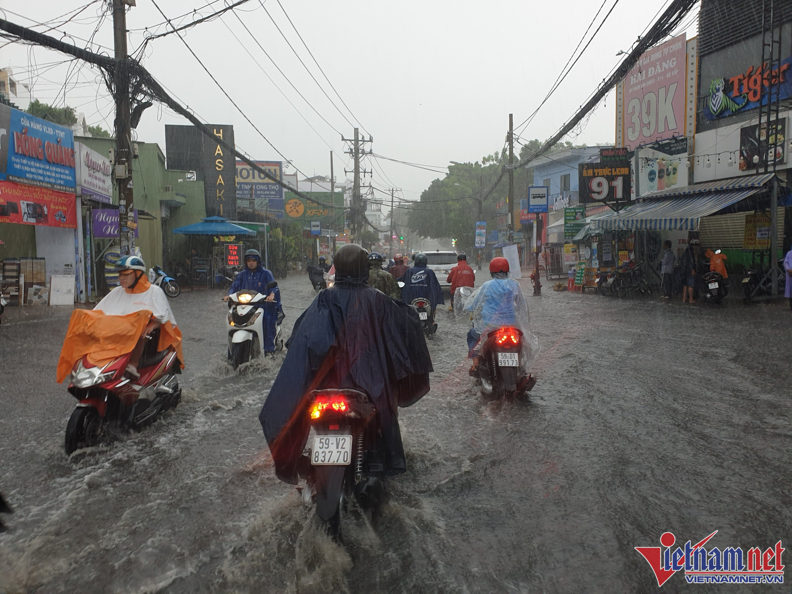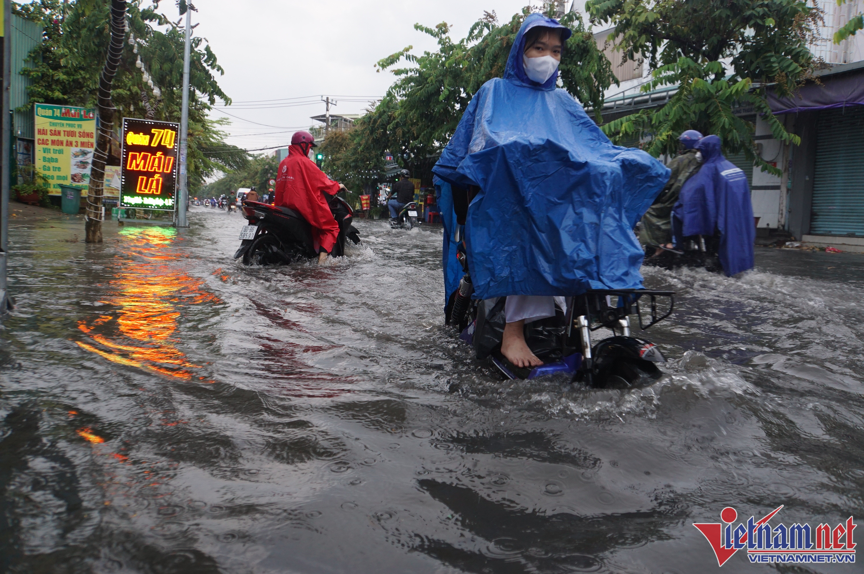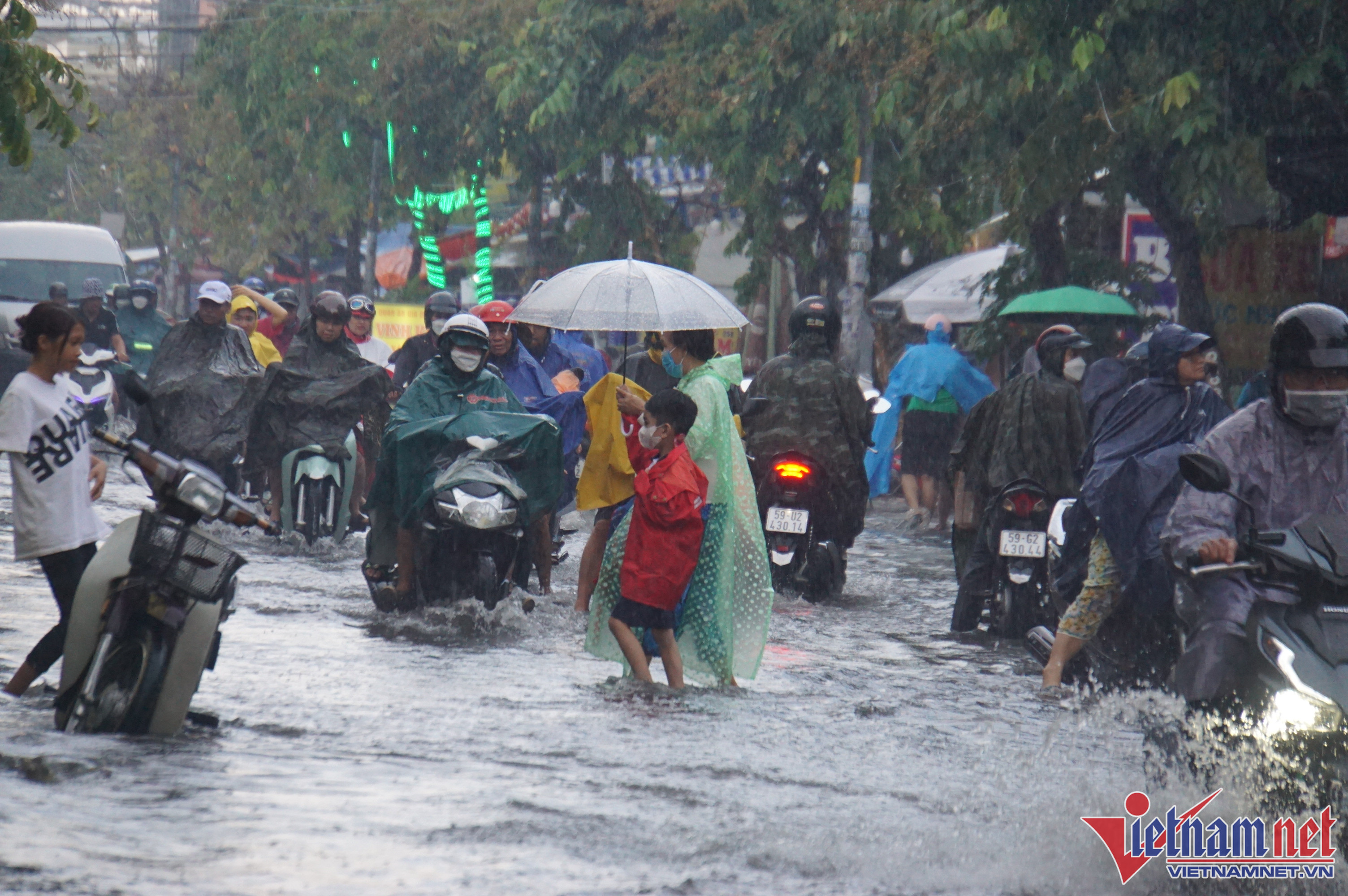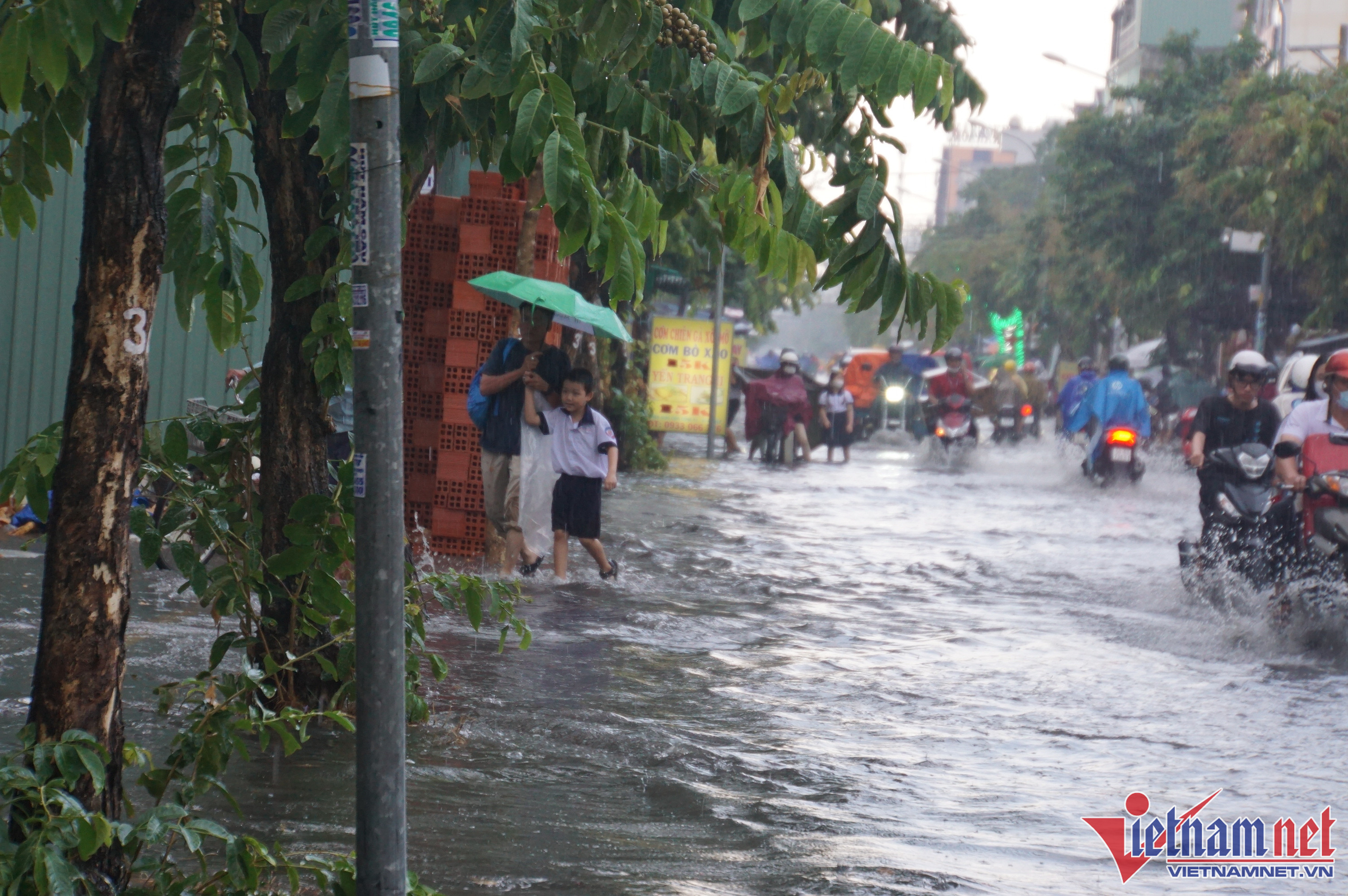 Trận ‘mưa vàng’ như trút nước khiến nhiều tuyến đường ở TP.HCM ngập nặng. Người dân phải bì bõm lội nước về nhà sau thời gian dài chịu cảnh nắng nóng oi bức.