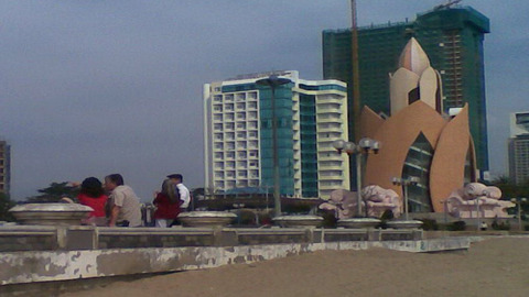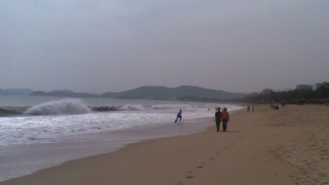 Cũng trong sáng mồng 4, biển Nha Trang nơi hấp dẫn nhiều du khách đã vô cùng vắng lặng. Trên bãi biển một vài người đứng dưới mé nước vui đùa với sóng biển. Hàng quán vắng ngắt. Những lều trốn nắng với những chiếc ghế bố nằm chơ vơ hiu quạnh.