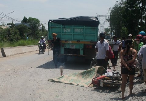 Cả hai người văng xuống đường. Xe container 62LD – 000.66 từ sau trờ tới cán ngang người cụ già.