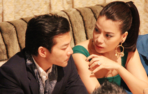 Là khách mời trong buổi ra mắt thương hiệu thời trang, Trương Ngọc Ánh sánh bước bên ông xã Trần Bảo Sơn với chiếc váy màu xanh sang trọng và khoe được vóc dáng thon thả của mình. Cặp đôi này trò chuyện thân mật và cùng chăm chú theo dõi các màn biểu diễn.