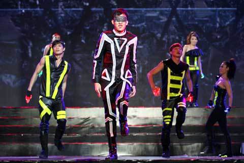 Hóa thân thành nhân vật siêu nhân trên sân khấu là cách mà Dương Triệu Vũ giới thiệu cho sản phẩm âm nhạc của mình.