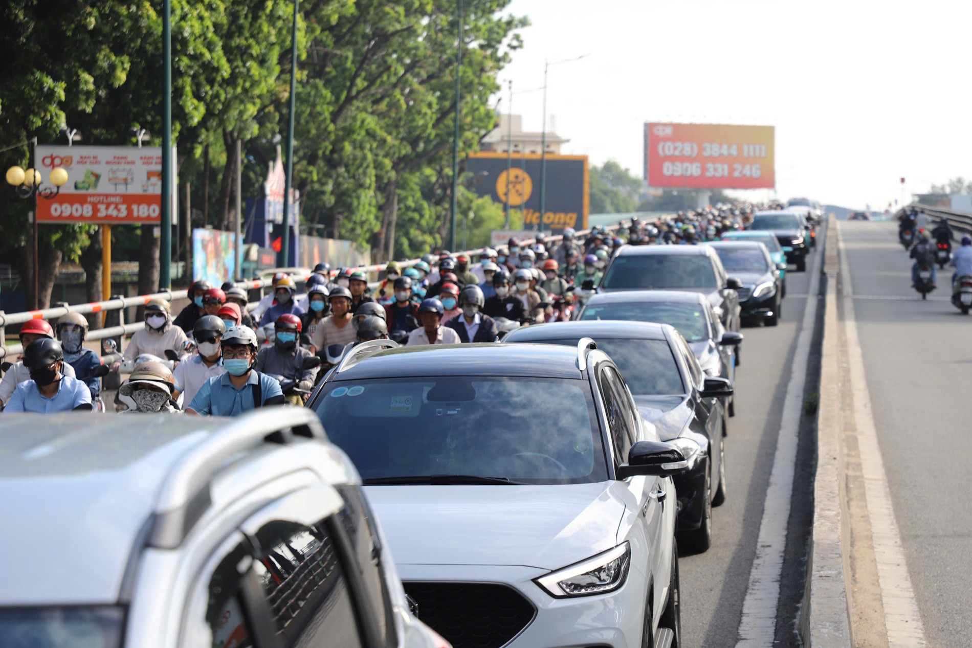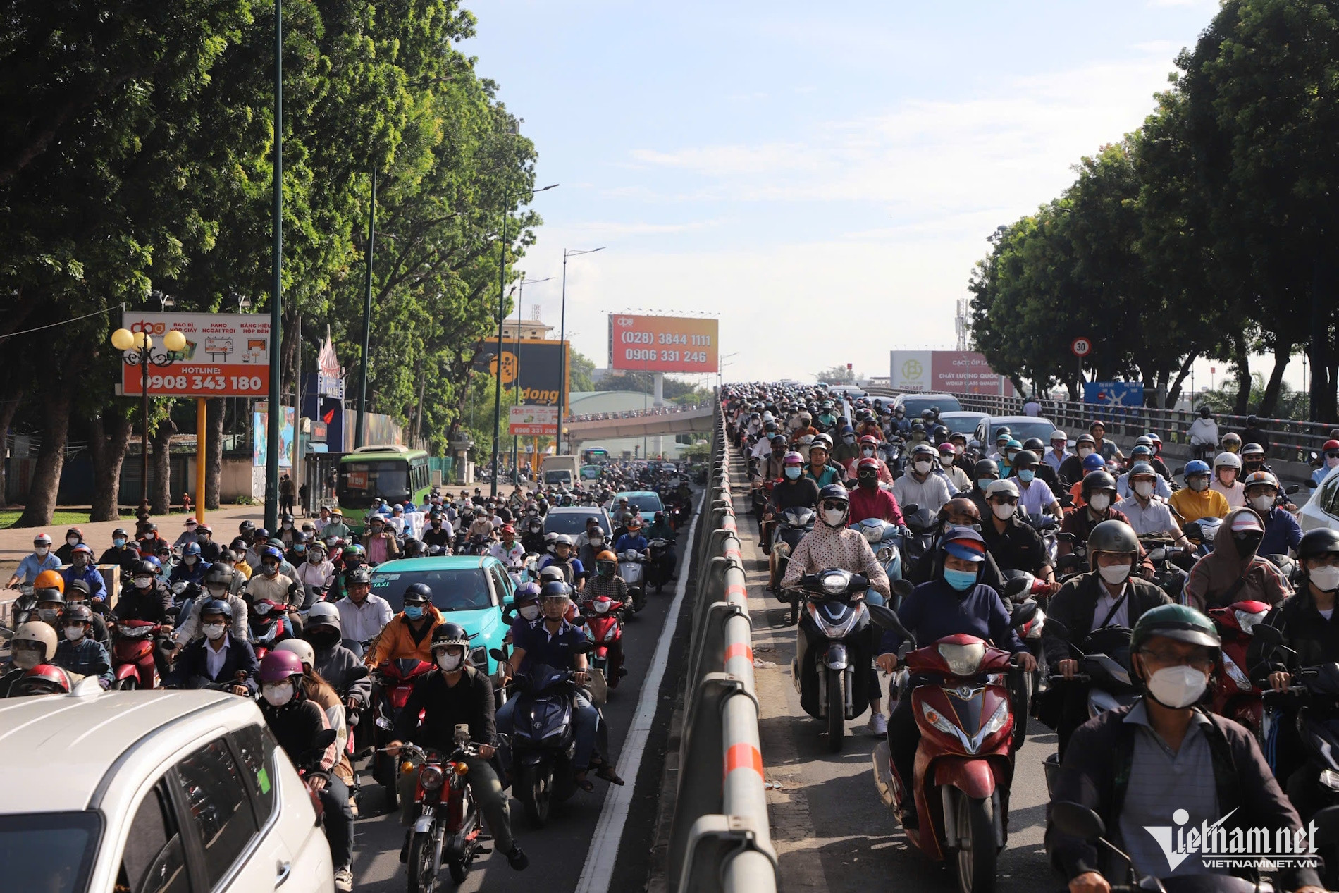 Ngày làm việc đầu tiên sau kỳ nghỉ lễ 2/9, nhiều tuyến đường ở TPHCM xảy ra ùn tắc, hàng nghìn ô tô và xe máy chen cứng mặt đường, nhích từng mét trong giờ cao điểm.