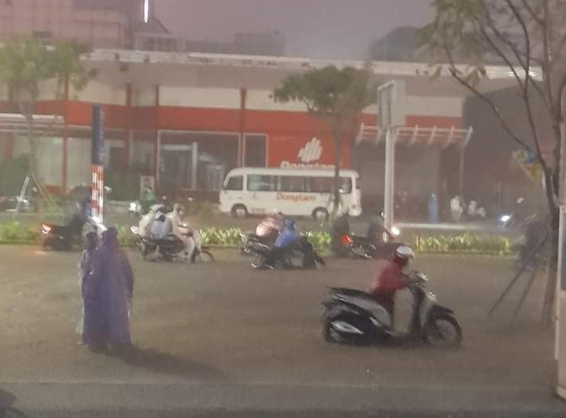 Chị quyết định nói chồng ở nhà lo cho con, còn mình sẽ tìm chỗ trú tạm. Chị được một người đàn ông và một số sinh viên hỗ trợ dắt xe vào gửi ở trụ sở công ty điện lực.